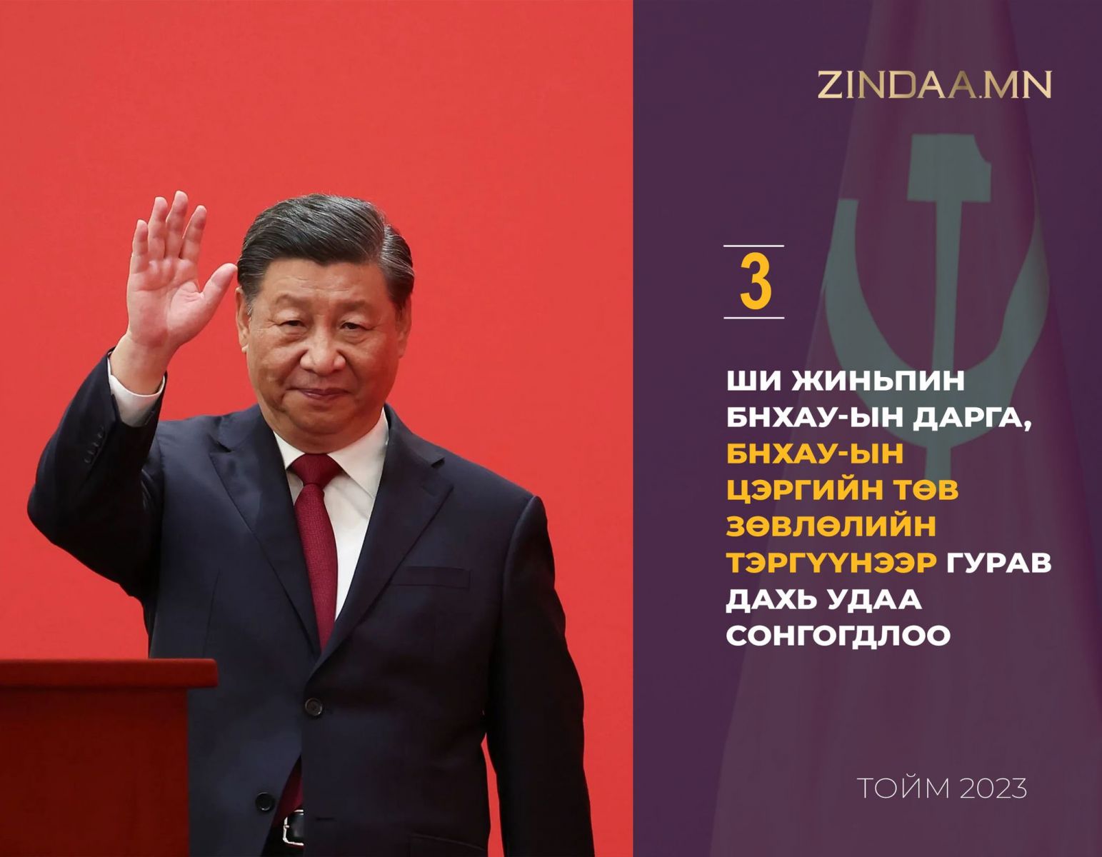 Бүх Хятадын Ардын Төлөөлөгчдийн Хурлын гишүүд Ши Жиньпинийг БНХАУ-ын дарга, БНХАУ-ын Цэргийн төв зөвлөлийн тэргүүнээр гурав дахь удаа сонголоо. Ши Жиньпинийг гурав дахь удаа сонгох тухай шинжээчид бүр 2018 оноос ярьж эхэлсэн. Тухайн үед БНХАУ Үндсэн хуульдаа өөрчлөлт оруулж, нэг хүн төрийн тэргүүний албан тушаалд хязгааргүй тоогоор сонгогдох эрхийг олгож байсан билээ.