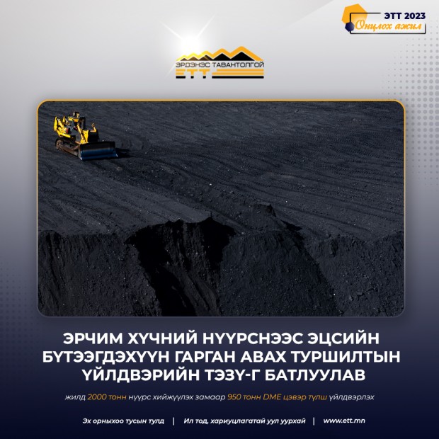 -Эрчим хүчний нүүрснээс эцсийн бүтээгдэхүүн гарган авах туршилтын үйлдвэрийн ТЭЗҮ-г боловсруулж эрдэс баялгийн мэргэжлийн зөвлөлөөр батлуулав.