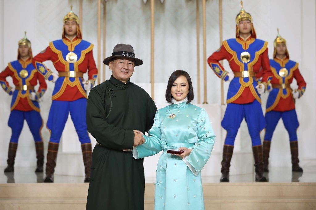Энэ өдөр Улсын драмын эрдмийн театрын жүжигчин, Соёлын тэргүүний ажилтан Төмөрийн Хулан Алтан гадас одон энгэртээ гялалзууллаа.