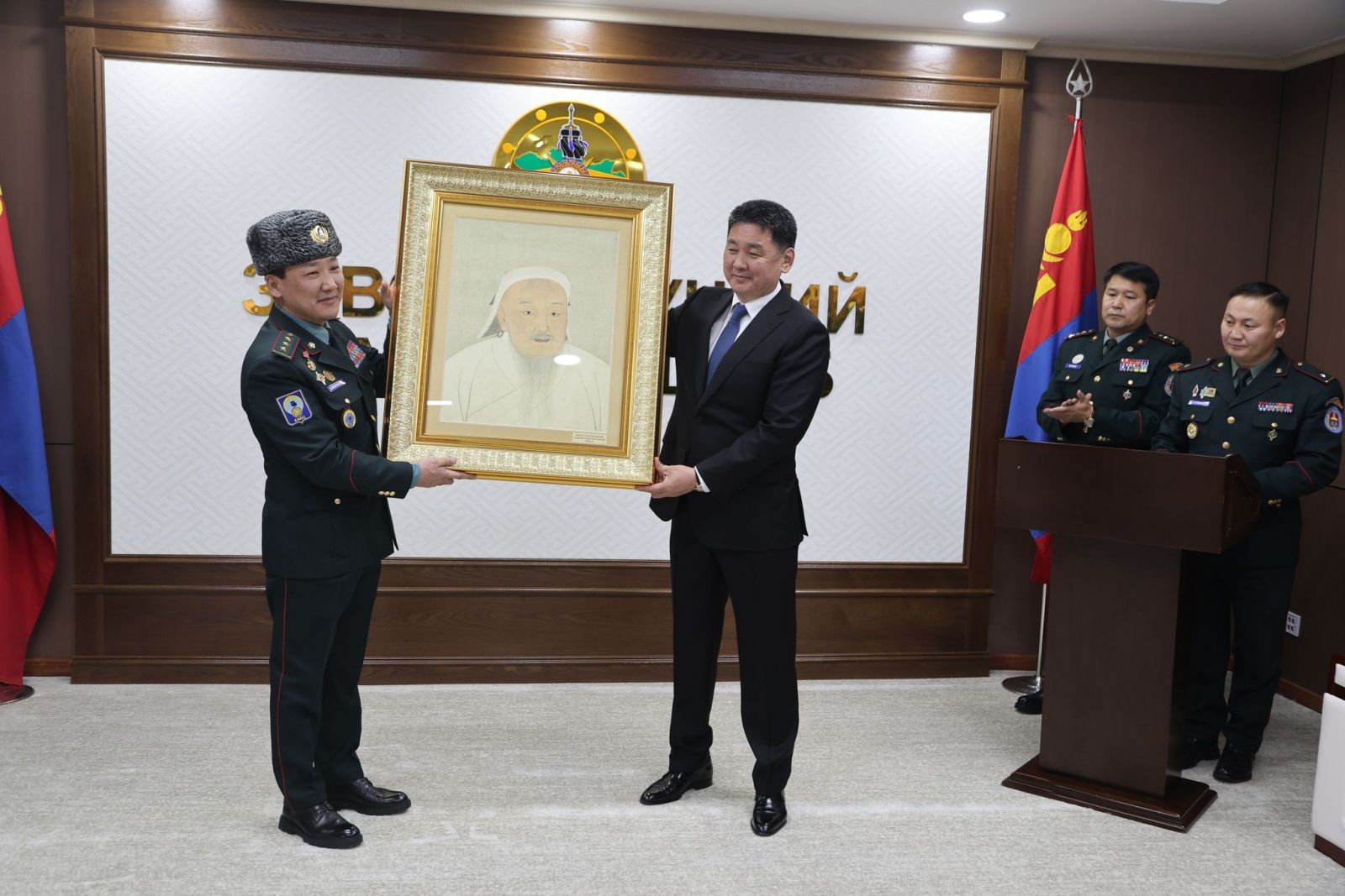 Монгол Улсын Ерөнхийлөгчид Зэвсэгт хүчний Жанжин штабын дарга хошууч генерал С.Ганбямба илтгэл өгч, Төрийн Хүндэт харуул хүндэтгэн угтсан юм. Үүний дараа ЗХЖШ-ын дарга хошууч генерал С.Ганбямба Монгол Улсын Ерөнхийлөгч, Зэвсэгт хүчний Ерөнхий командлагч У.Хүрэлсүхэд Зэвсэгт хүчний өнөөгийн үйл ажиллагааны талаар танилцуулга хийв. Мөн энэ үеэр Монгол Улсын Ерөнхийлөгч, Зэвсэгт хүчний Ерөнхий командлагч У.Хүрэлсүх Зэвсэгт хүчний Кибер аюулгүй байдлын цэргийн командлалд ажиллаж “Эзэн богд Чингис хааны эш хөрөг”-ийг гардуулсан юм.