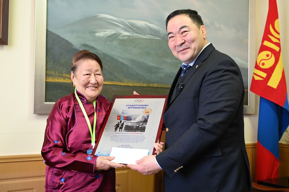 1964 оны нэгдүгээр сарын 29-ний өдөр Монгол улсаас цаначин, тэшүүрчин, дасгалжуулагч нийлсэн 21 тамирчин Иннсбрукийн өвлийн есдүгээр олимпын наадмыг зорин очсон байдаг. Тэдний төлөөлөл, өдгөө амьд сэрүүн, энх тунх амьдарч буй ахмад тамирчин Д.Пүрэвлоов, Б.Зундуй, Л.Дашдэмбэрэл, Л.Боль нартай уулзав.