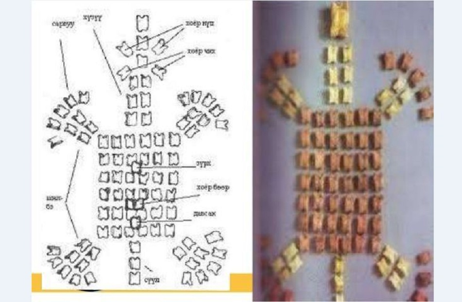 “Алаг мэлхий өрөх” хэмээх шагай өрөх тоглоомоор хэдэн ч хүн тоглох боломжтой бөгөөд 92 шагайг мэлхийний бие болгон өрж нааддаг.