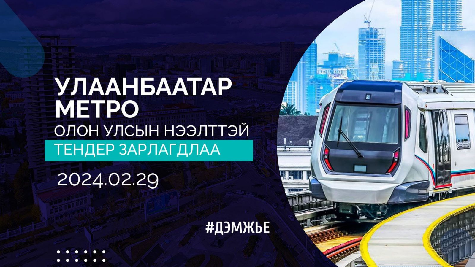 Өнгөрч буй долоо хоногт Улаанбаатарчуудыг метротой болгох талаар хотын дарга Х.Нямбаатар мэдэгдэж, албан ёсоор анх удаа олон улсад нээлттэй тендер зарлалаа.