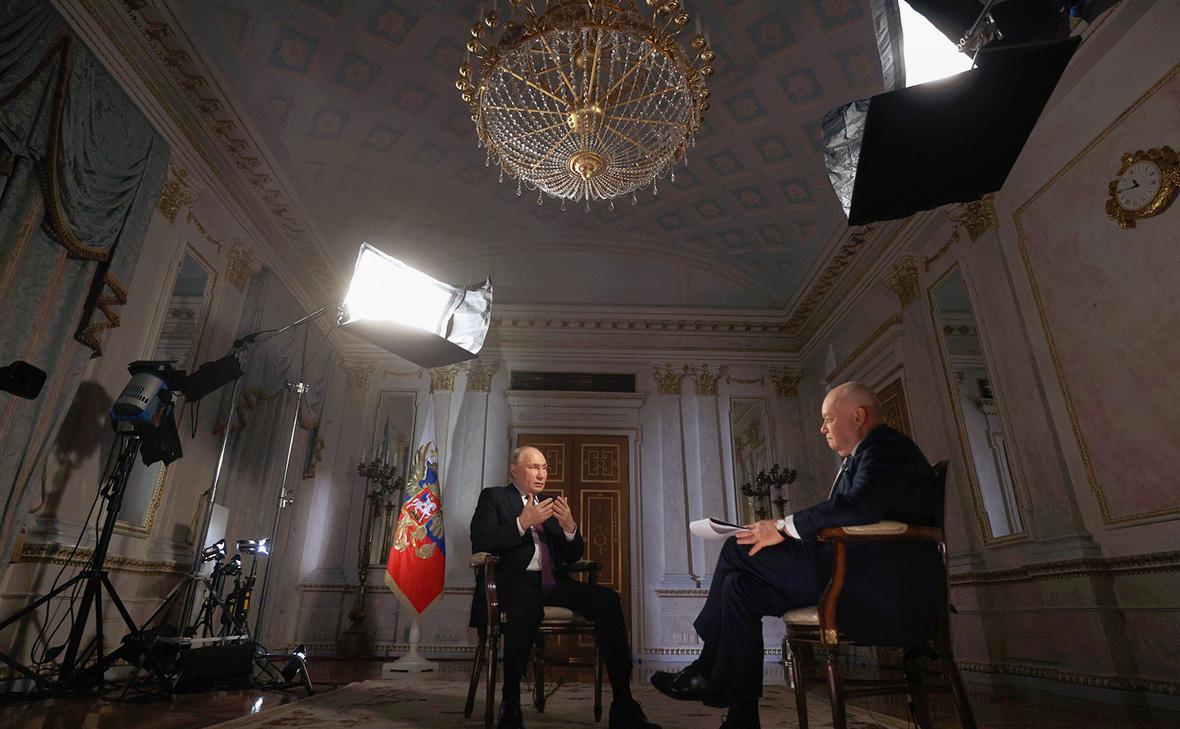 ОХУ-ын Ерөнхийлөгч Владимир Путин Дмитрий Киселёвт ярилцлага өгөхдөө “Украинд гадны цэргүүд байгаа болон зэвсгийн нийлүүлэлтүүд нь байлдааны талбар дахь нөхцөл байдлыг өөрчлөхгүй” гэжээ. Түүний ярьж буйгаар Барууны орнуудын цэргүүд Украинд эртнээс байгаа аж. Путин “Төрийн эргэлтээс өмнө гадны цэргүүд байсан. Төрийн эргэлт гарсны дараа тэдний тоо илүү нэмэгдсэн” гэсэн байна.