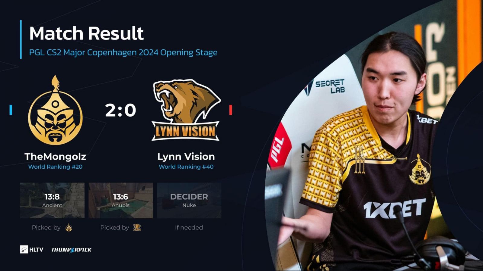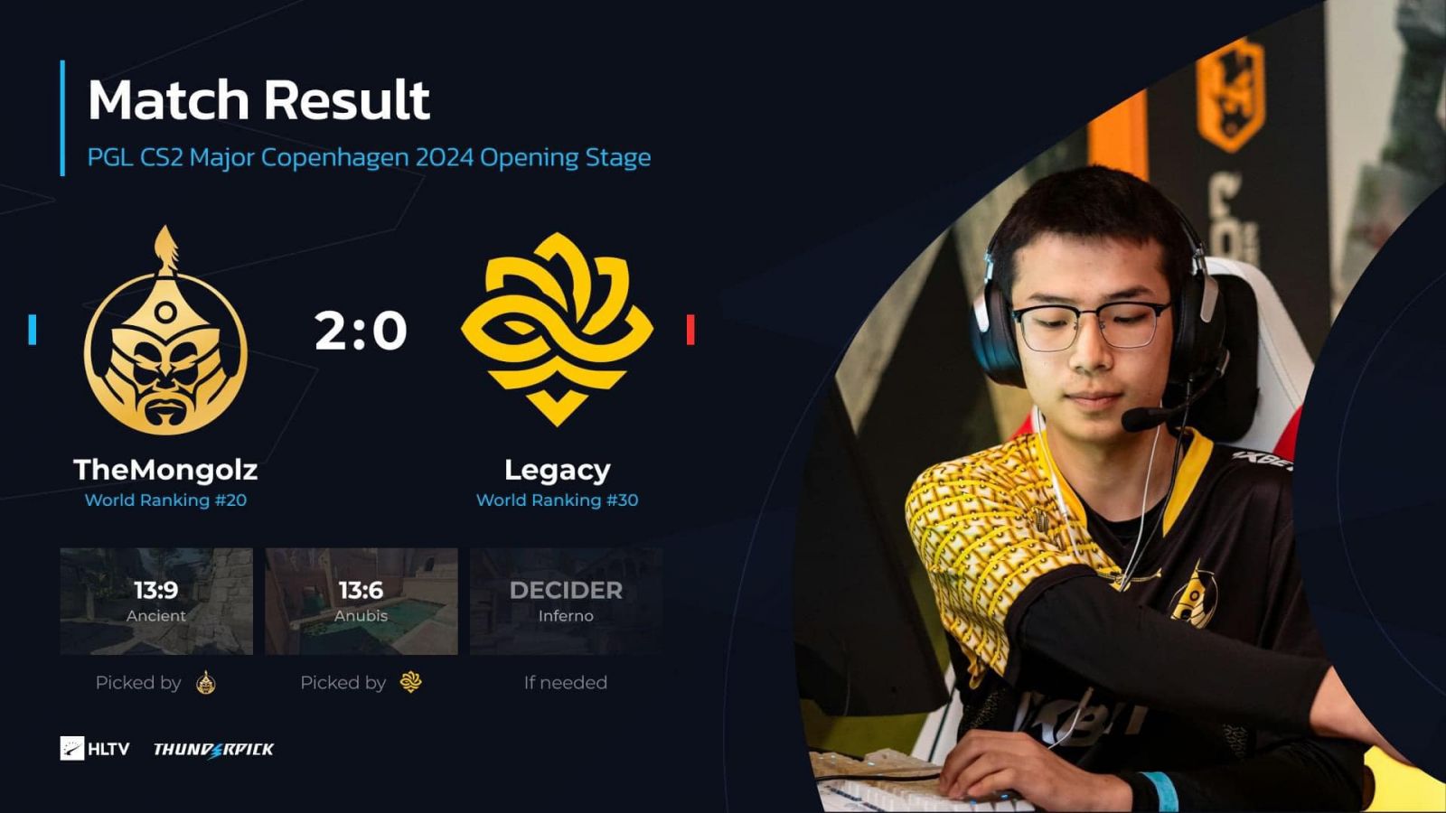 “The MongolZ”-ынхон Legacy-г 2:0 харьцаатайгаар буулган авч, түүхэндээ анх удаагаа Мэйжорын хасагдах шатанд шалгарч байгаа нь энэ юм. Энэ амжилт нь тэднийг Монголын төдийгүй Мэйжорын 3 слот авчирсан Ази тивийн анхны баг болгож байна.