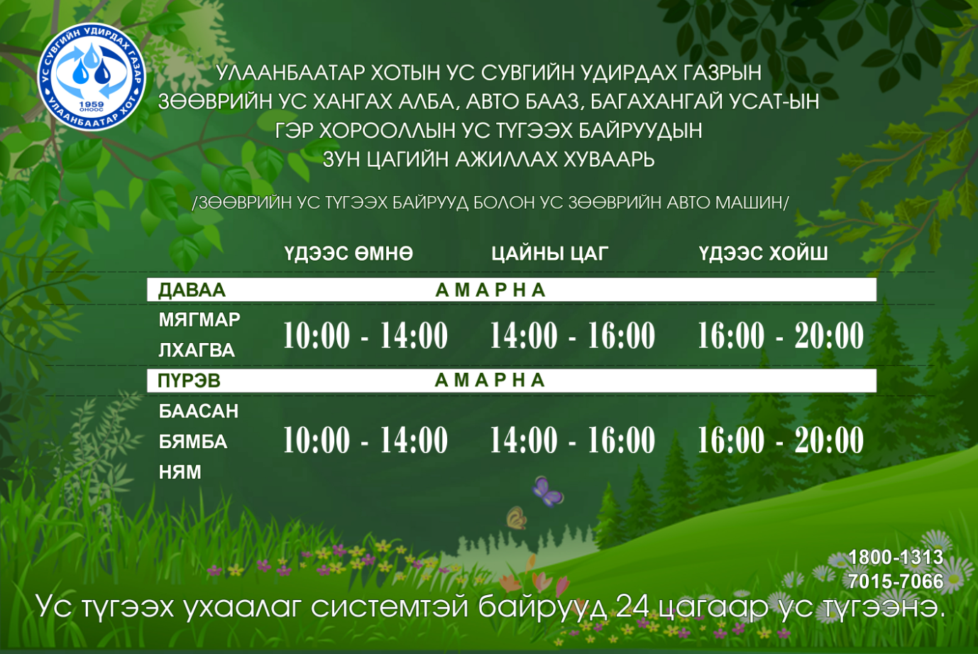 Улаанбаатар хотын гэр хорооллын ус түгээх байрууд зун цагийн хуваарьт шилжлээ