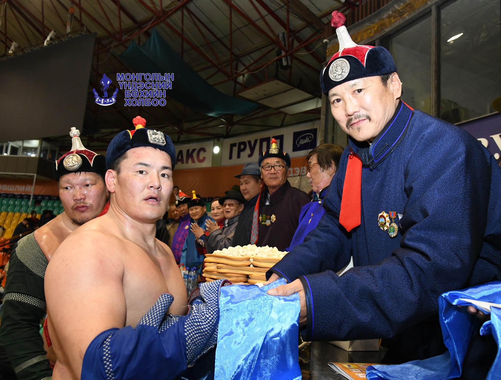 Нэрэмжит барилдаанаа зохион байгуулж буй улсын харцага Н.Саранцогтод МҮБХ болон нутгийн ахан дүүс, найз нөхөд, үе тэнгийн бөхчүүд, “Хангарьд” спорт хорооны төлөөлөл, Сэлэнгэ аймгийн бөхчүүд нарын олон байгууллага, хүмүүс хүндэтгэл үзүүллээ.