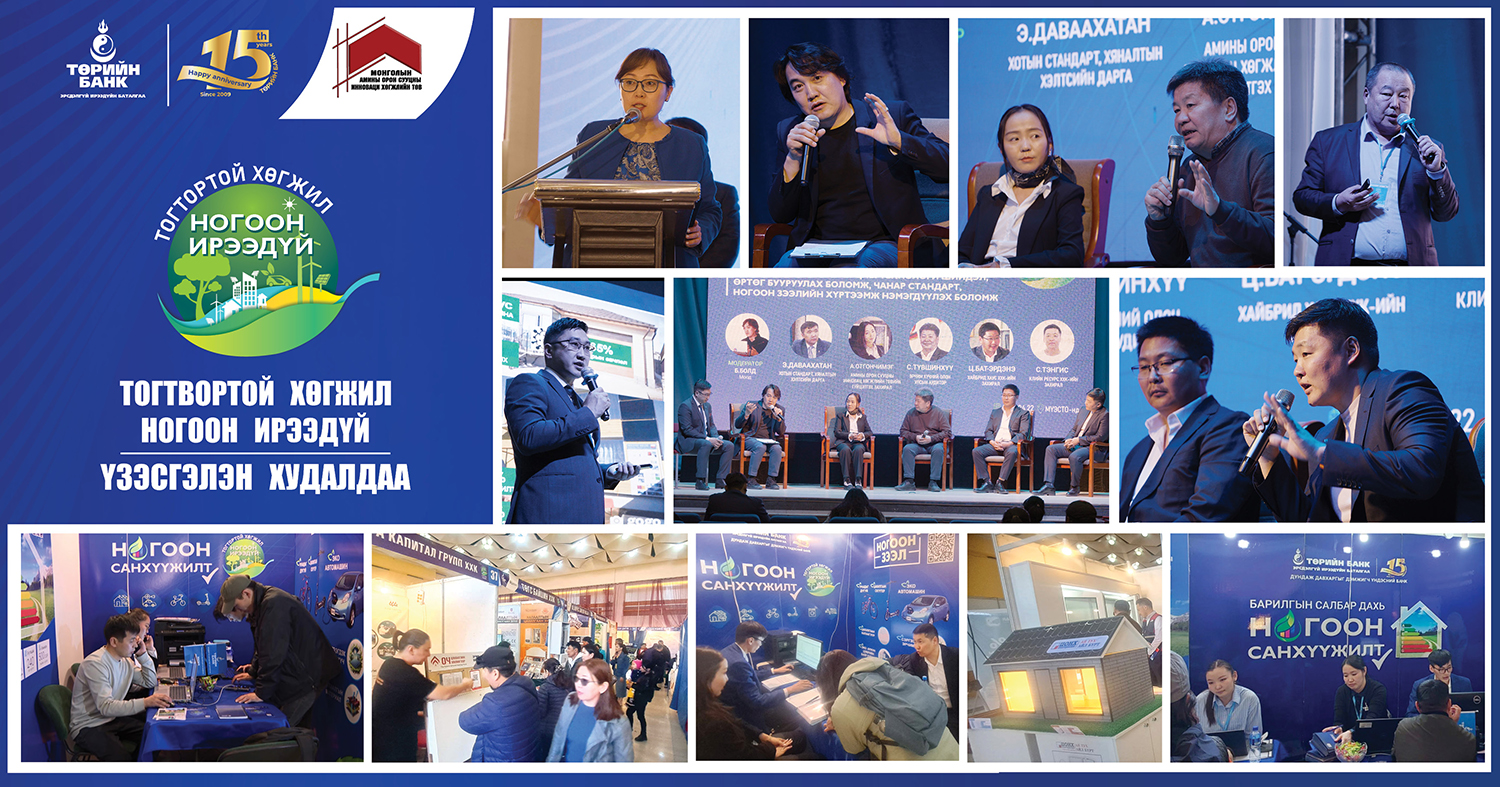 Төрийн банк, Амины орон сууцны инновац хөгжлийн төвтэй хамтран байгальд ээлтэй дэвшилтэт технологийг нэвтрүүлж буй бизнес эрхлэгчдийн бүтээгдэхүүн үйлчилгээг иргэд, харилцагчдад таниулах, бизнесийн хамтын ажиллагааг өргөжүүлэх, хүрээлэн буй орчинд ээлтэй худалдан авалтыг дэмжих зорилгоор зохион байгуулсан “Тогтвортой хөгжил-Ногоон ирээдүй” үзэсгэлэн худалдаа МҮЭСТО-д 2024.04.22-28-ны өдрүүдэд амжилттай болж өндөрлөлөө.