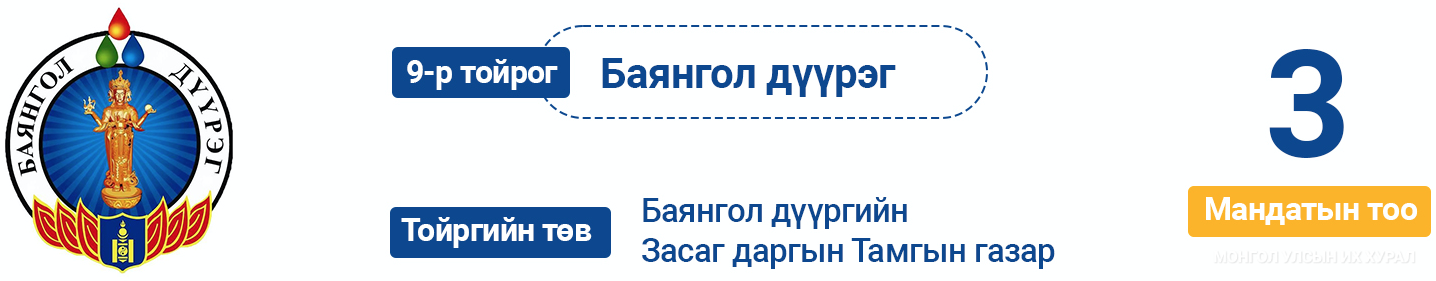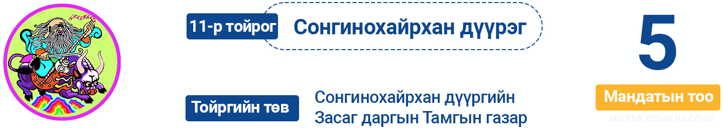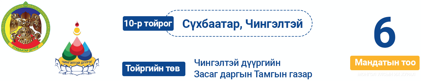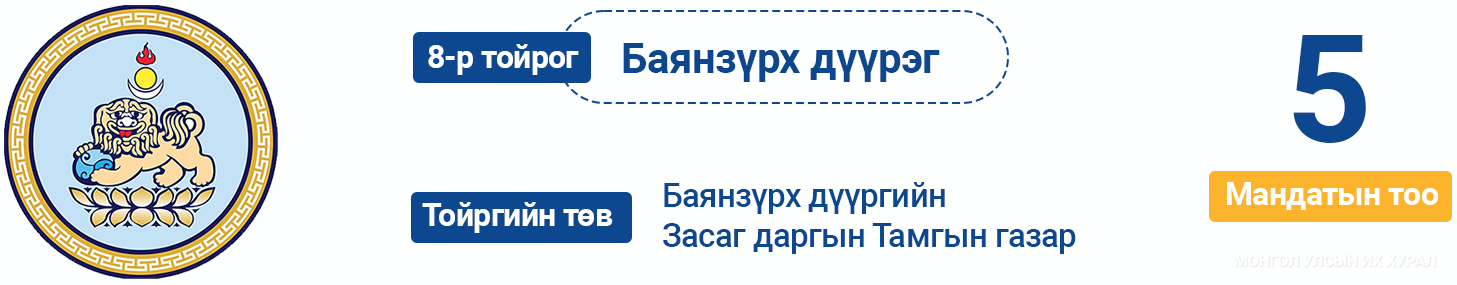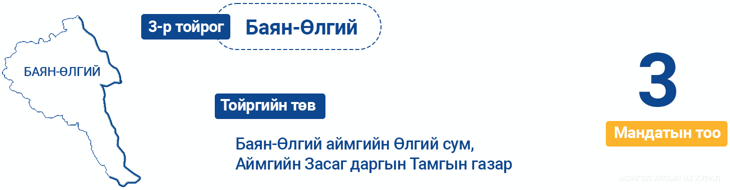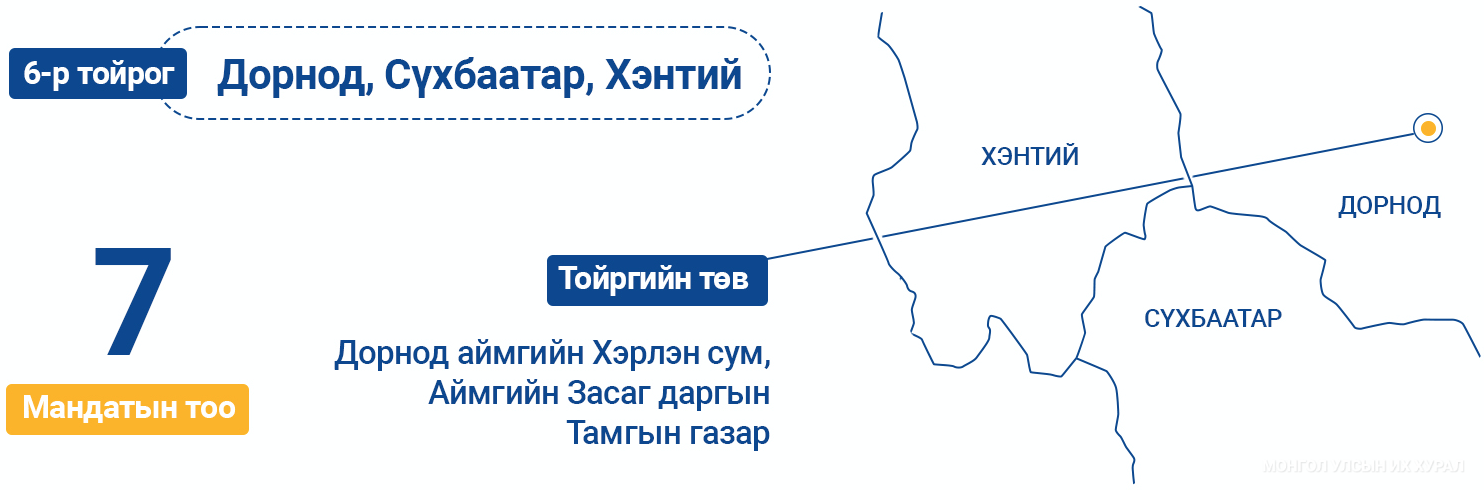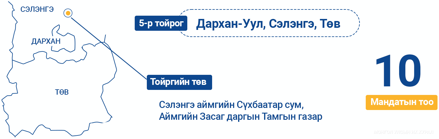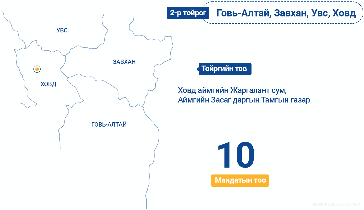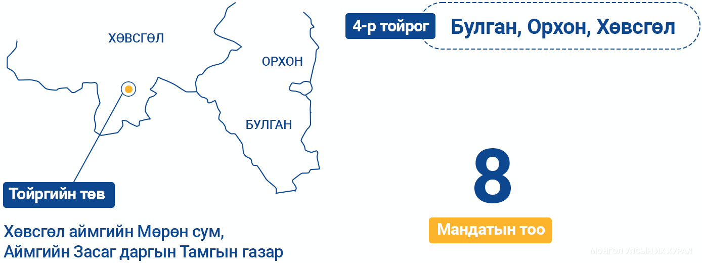 Монгол Улсын бүсчилсэн хөгжлийн үзэл баримтлалын хүрээнд Улсын Их Хурлын 2024 оны ээлжит сонгуулийн 2, 3 дугаар тойрогт баруун бүсийн Баян- Өлгий, Говь-Алтай, Завхан, Увс, Ховд аймгийг, 1, 4 дүгээр тойрогт хангайн бүсийн Архангай, Баянхонгор, Булган, Орхон, Өвөрхангай, Хөвсгөл аймгийг, 5, 7 дугаар тойрогт төвийн бүсийн Говьсүмбэр, Дархан-Уул, Дорноговь, Дундговь, Өмнөговь, Сэлэнгэ, Төв аймгийг, 6 дугаар тойрогт зүүн бүсийн Дорнод, Сүхбаатар, Хэнтий аймгийг, 8, 9, 10, 11, 12, 13 дугаар тойрогт Улаанбаатарын бүсийн Баянзүрх, Баянгол, Сүхбаатар, Чингэлтэй, Сонгинохайрхан, Хан-Уул, Багануур, Багахангай, Налайх дүүргийг хамруулан тогтоолоо.