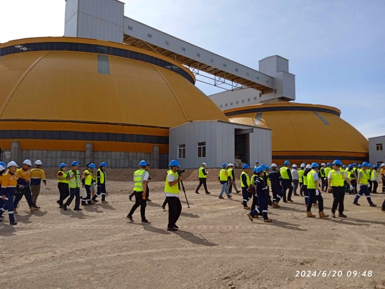 “Эрдэнэс Тавантолгой” ХК-ийн удирдлагууд ирсэн зочдыг угтан авч, шууд үйлдвэрээрээ дагуулан бүтээн байгуулалттай танилцууллаа.