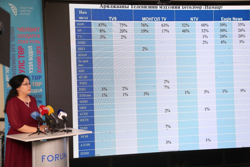 Арилжааны телевизүүд 4-5 нам эвсэлд түлхүү цаг оноосон нь мониторингоор илрэв. Харин бие даагчдын талаар хангалттай мэдээлэл нэвтрүүлсэнгүй.