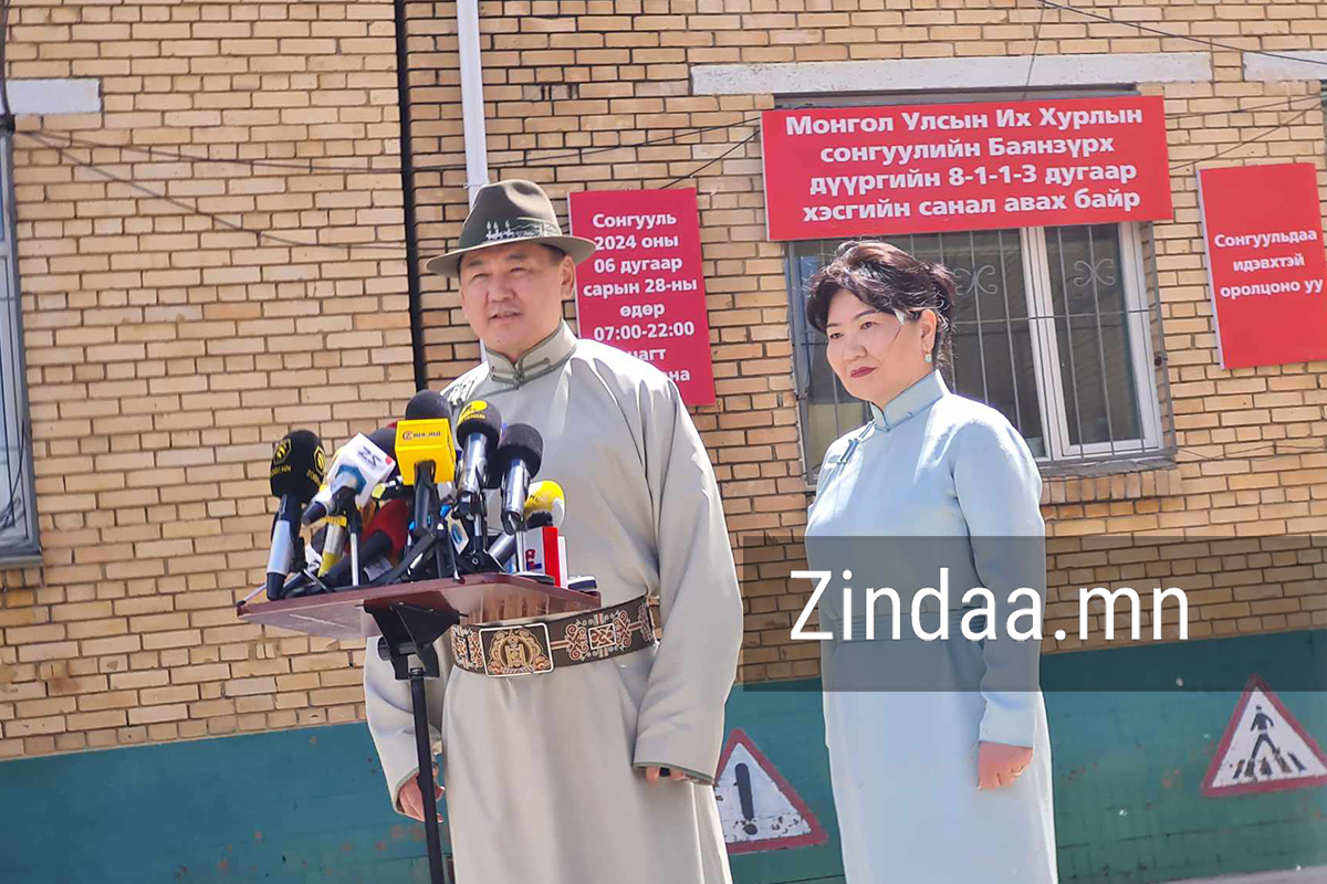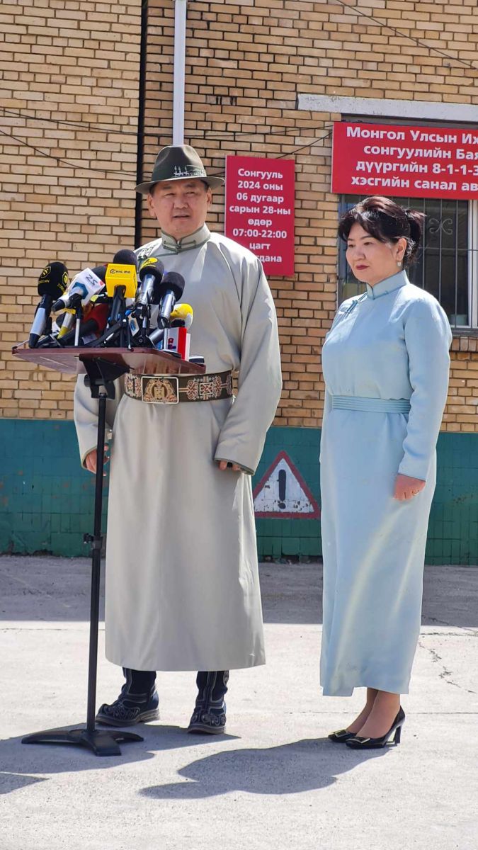 Монгол Улсын Ерөнхийлөгч У.Хүрэлсүх, гэргий Л.Болорцэцэгийн хамт сонгуулиа өглөө.
