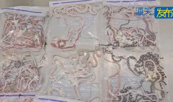 Тэрбээр могойнуудыг уутанд хийн, өмдөндөө нуусан байжээ. Уутанд янз бүрийн өнгө, хэмжээний олон төрлийн могой байсан байна.