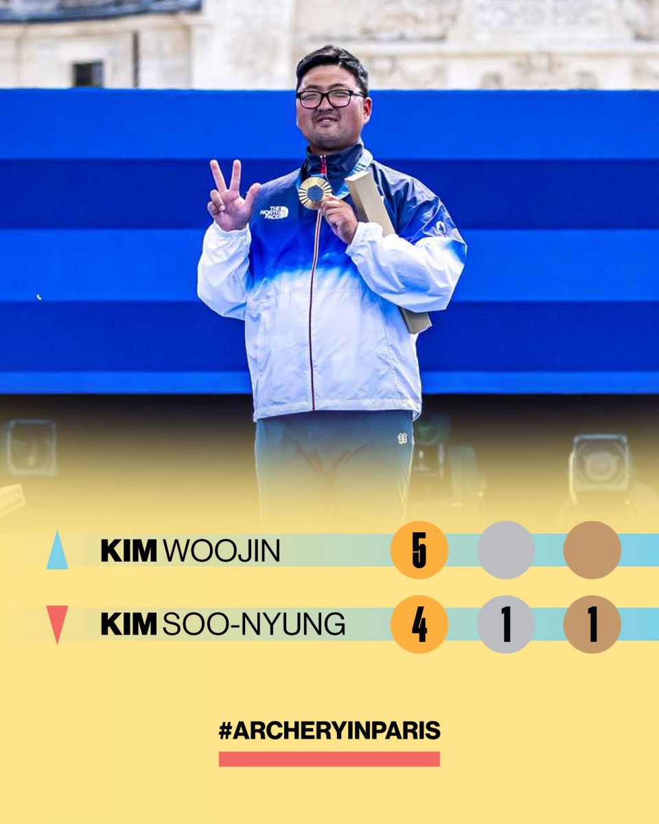 “Рио 2016”, “Токио 2020” наадмын байт харвааны багийн төрөлд дараалан түрүүлээд байсан Өмнөд Солонгосын харваач Ким Ү-жинь Парист гайхалтай амжилт үзүүлж, эхлээд эрэгтэйчүүдийн багийн төрөлд 3 дахь алтан медалиа хүртсэн бол үргэлжлүүлэн анх удаа холимог хос болон ганцаарчилсан төрөлд түрүүлж, олимпын үнэмлэхүй аварга боллоо.