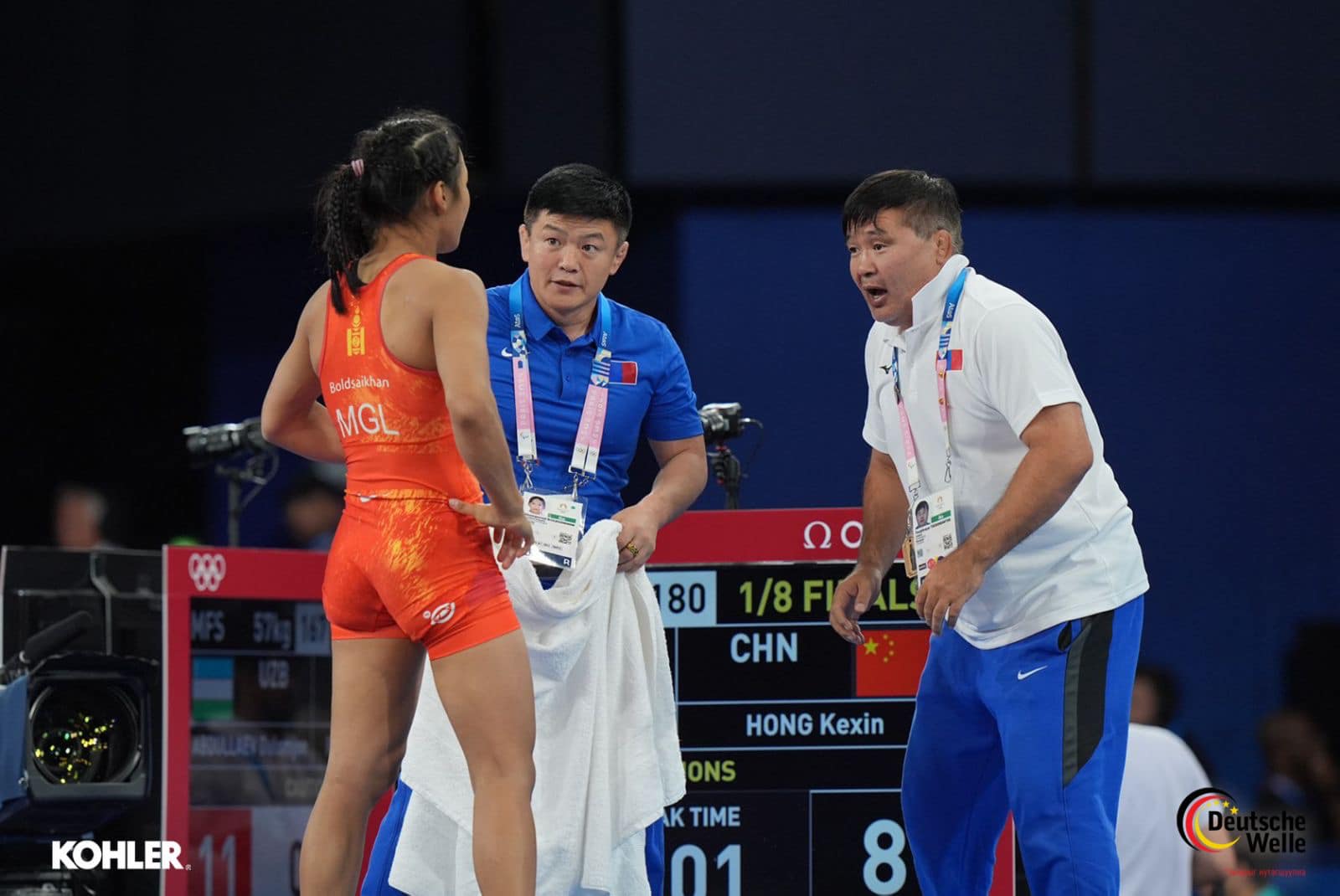 Эмэгтэйчүүдийн 57 кг-ын жинд өрсөлдсөн ОУХМ Б.Хонгорзул эхний барилдаандаа БНХАУ-ын тамирчин Хун Кө Шиньтэй өрсөлдөж, 12:16 харьцаатай ялагдлаа.