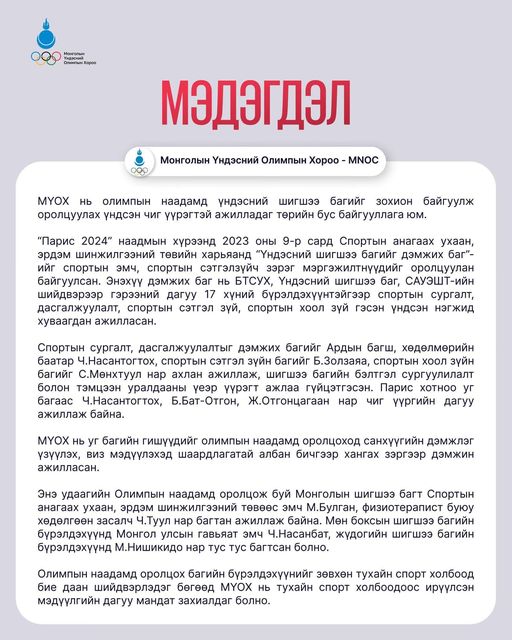 Монголын үндэсний олимпын хороо (МҮОХ)-ноос үүсээд буй нөхцөл байдлын талаар мэдэгдэл хийжээ.