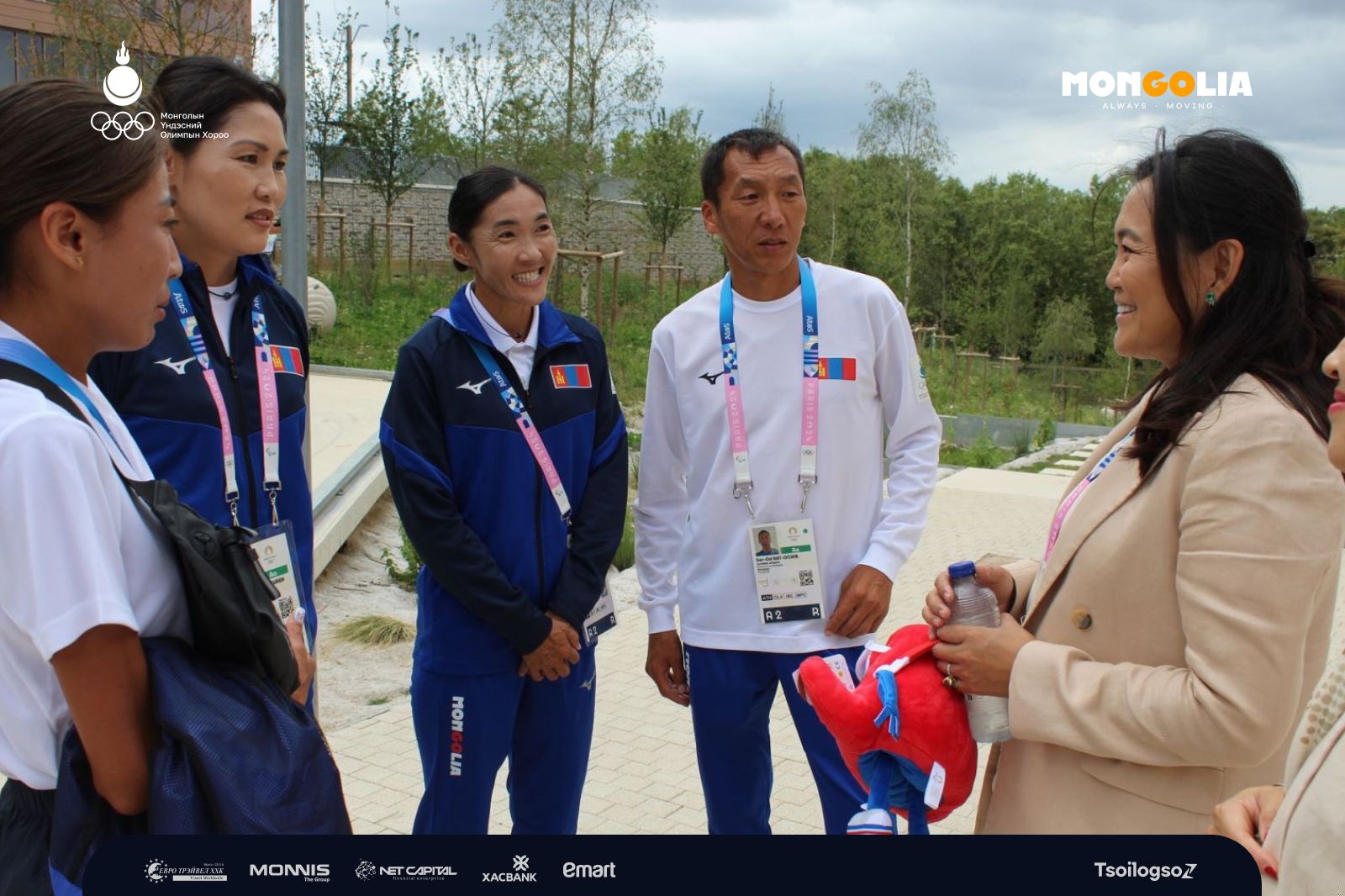 Өнөөдөр тамирчдын байрлаж буй Олимпын хотхонд ССАЖЗ-ын сайд Ч.Номин, ОУОХ-ны гишүүн МҮОХ-ны Ерөнхийлөгч Б.Баттүшиг, МҮОХ-ны ерөнхий нарийн бичгийн дарга Э.Бадар-Ууган нар зочилж Монголын баг тамирчдадаа амжилт хүслээ.