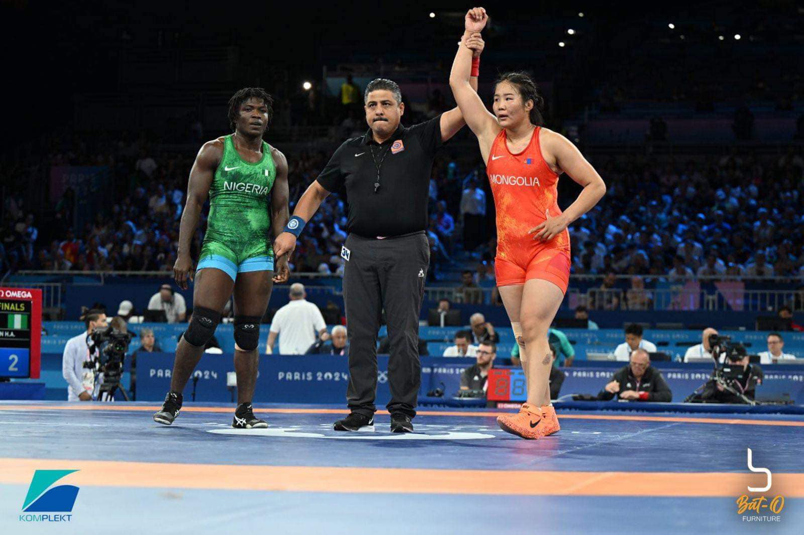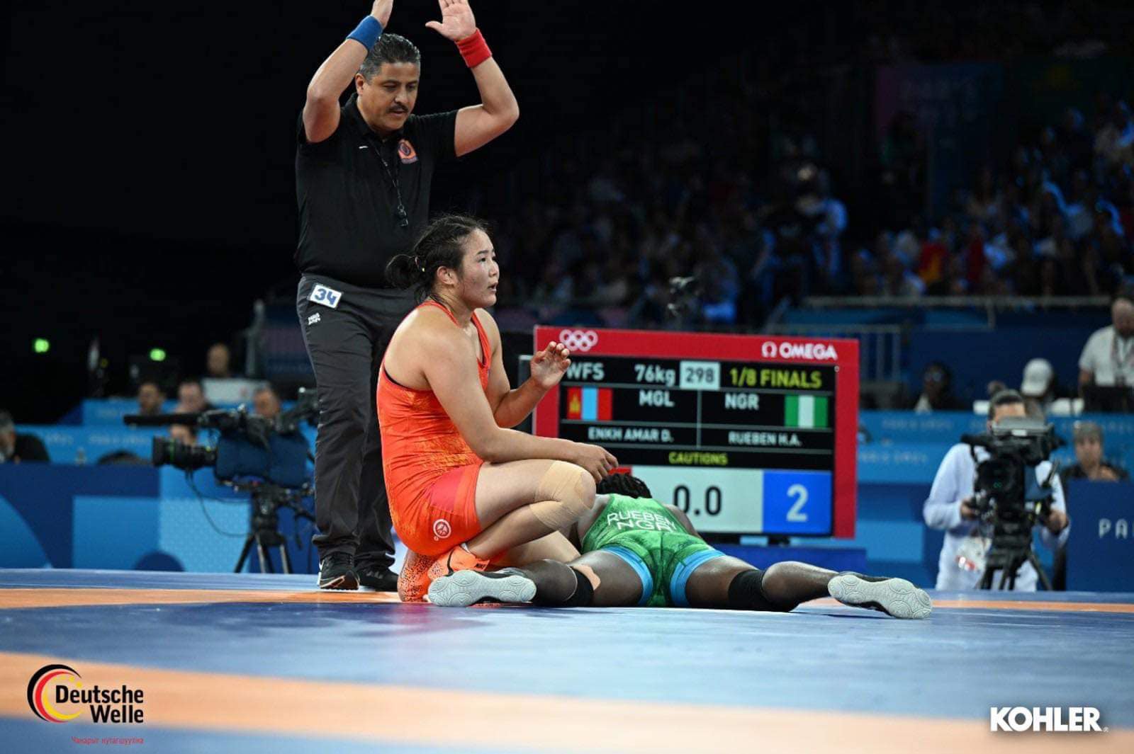 "Парис-2024" олимпын наадмын эмэгиэйчүүдийн 76 кг-ын жингийн барилдаан эхэлж, ОУХМ Э.Даваанасан Африк тивийн хос алт, 3 мөнгөн медальт тамирчин Нигерийн Ханна Амучечи Рубентэй эхний тойргийн барилдаанаа хийж 5:2 харьцаатайгаар ялалт байгууллаа.