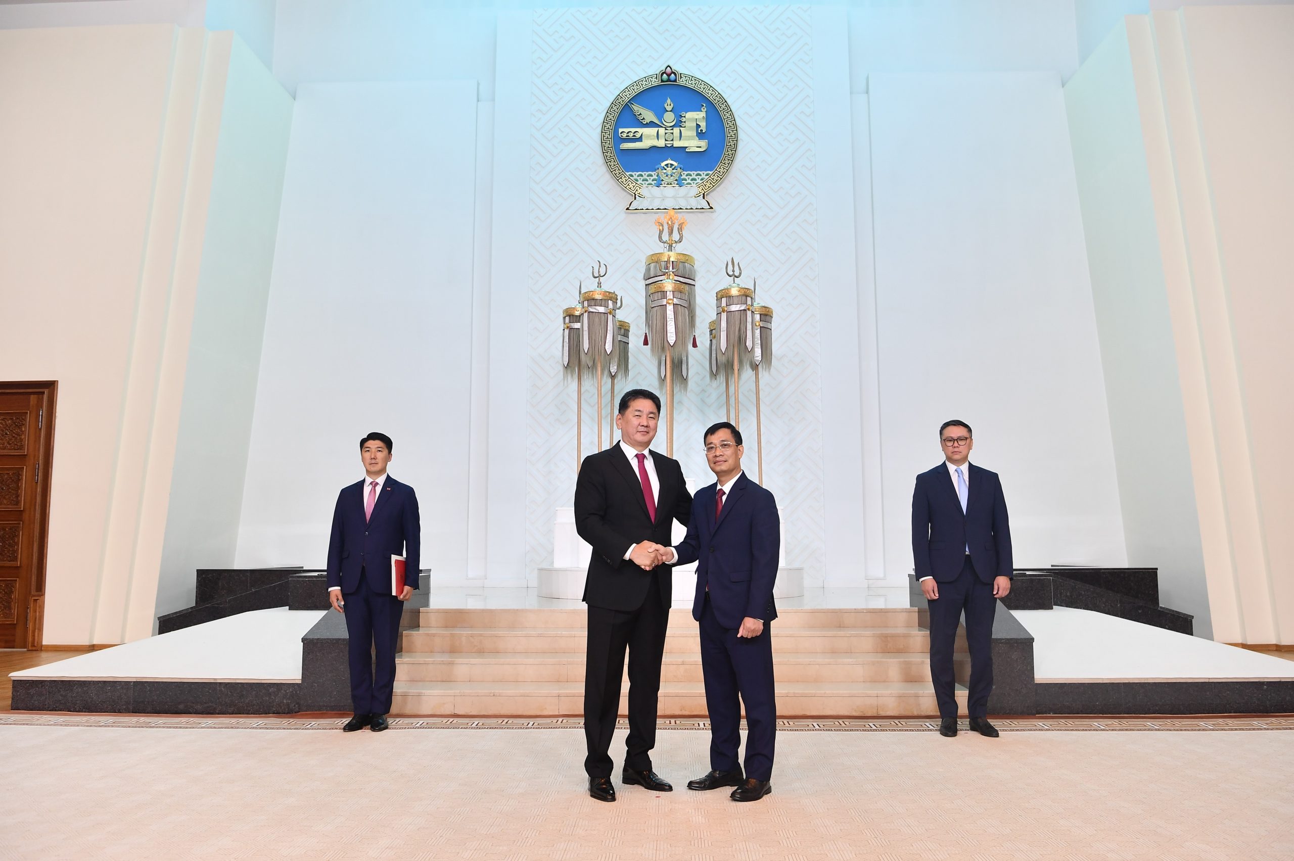 Монгол Улсын Ерөнхийлөгч Ухнаагийн Хүрэлсүхэд Бүгд Найрамдах Социалист Вьетнам Улсаас Монгол Улсад суух Онц бөгөөд Бүрэн эрхт Элчин сайд Нгуен Дуан Тань 2024 оны 08 дугаар сарын 28-ны өдөр Итгэмжлэх жуух бичгээ өргөн барив.