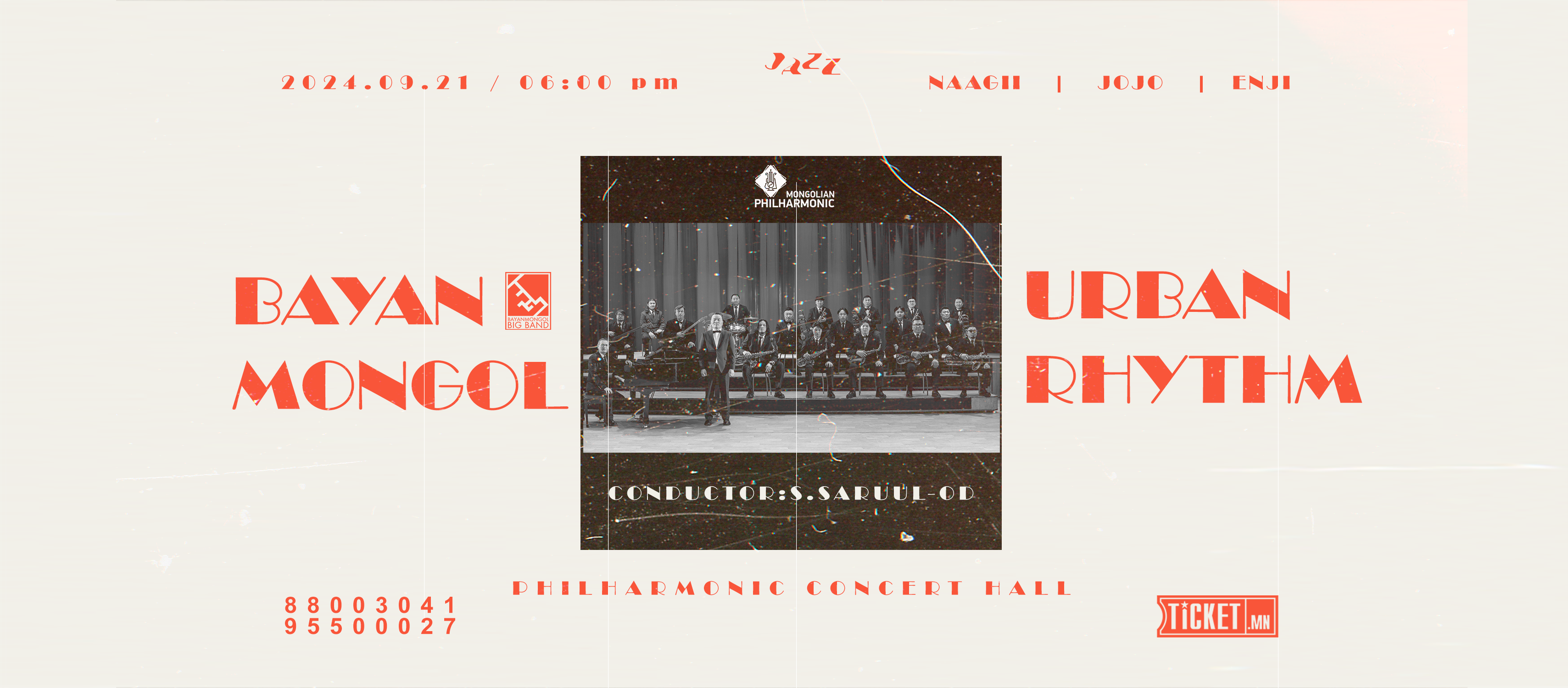 Төрийн Соёрхолт Баянмонгол чуулгын “Urban Rhythm” буюу Хотын Хэмнэл нэртэй цэвэр жазз гэх тодотголтой тоглолт энэ есдүгээр сарын 21-нд Улсын Филармонийн концертын танхимд тоглогдохоор болжээ.