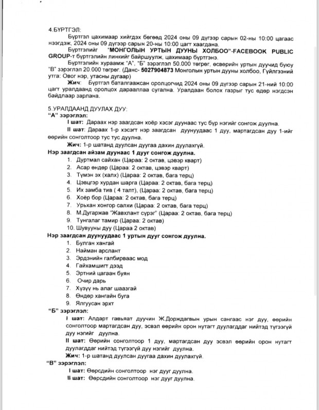 3. Өсвөрийн уртын дуучид буюу 17 нас хүртэлх настай хүүхдүүд гэсэн ангиллын дагуу болно.