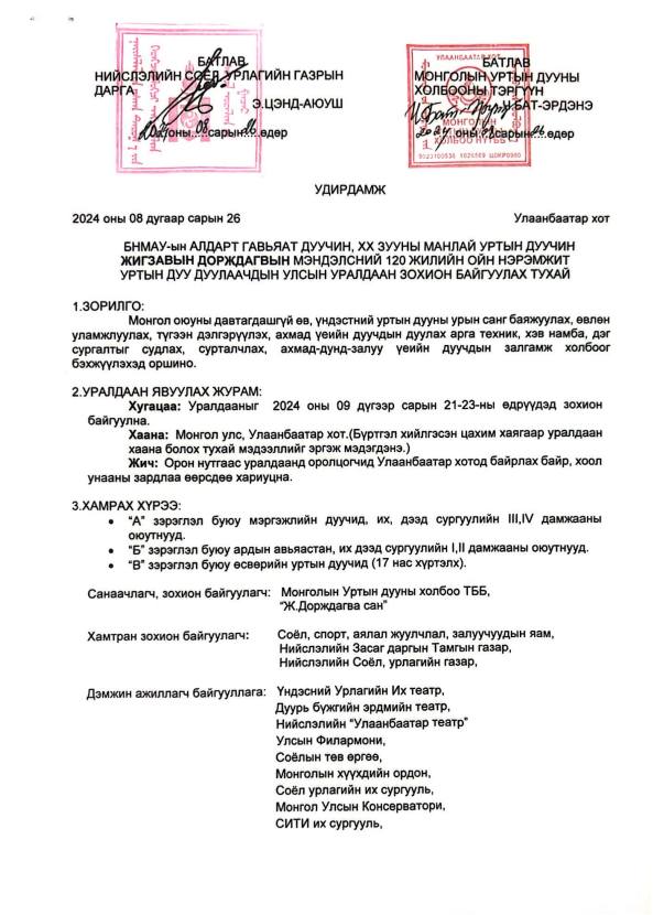 1. Мэргэжлийн дуучид, мэргэжлийн их дээд сургуулийн гурав болон дөрөвдүгээр дамжааны оюутнууд,