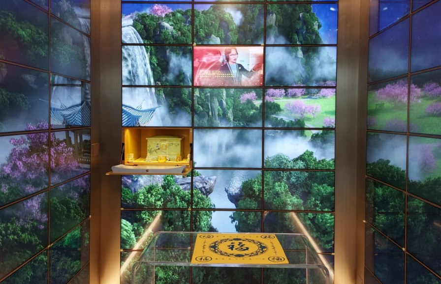 Бээжингийн Тайзию оршуулгын газарт чандар хадгалах хэсэгт дижитал дэлгэц байршуулсан байдаг. Дэлгэцээр талийгчдын гэрэл зураг, дүрс бичлэгийг үзүүлнэ. Ногоон оршуулгын хөтөлбөрийн хүрээнд Бээжин хотод талийгчийг чулуу, суварга босголгүйгээр үнэгүй оршуулах үйлчилгээ нэвтэрчээ. Талийгчийн ар гэрийнхэнд QR кодтой дурсгалын самбар өгөх ба кодыг уншуулж талийгчийн мэдээллийг харах боломжтой гэнэ.