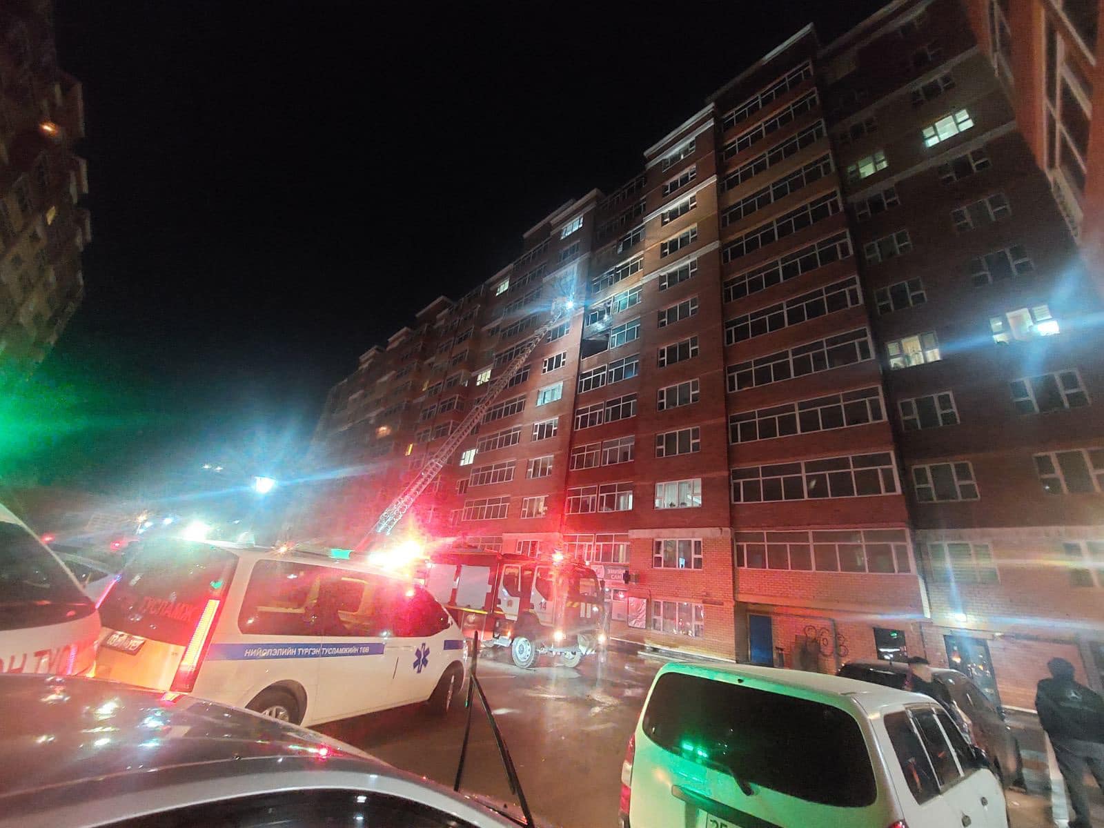 Дуудлагын дагуу Хан-Уул дүүргийн Онцгой байдлын хэлтсийн Гал түймэр унтраах, аврах 14 дүгээр анги, нэмэлтээр Чингэлтэй дүүргийн Онцгой байдлын хэлтсийн Гал түймэр унтраах, аврах 10 дугаар ангийн бүрэлдэхүүн ажиллаж 7, 8 давхарт айлын тагтны хэсэг шатаж байсныг гал түймрийн тархалтыг 23:26 цагт зогсоожээ.