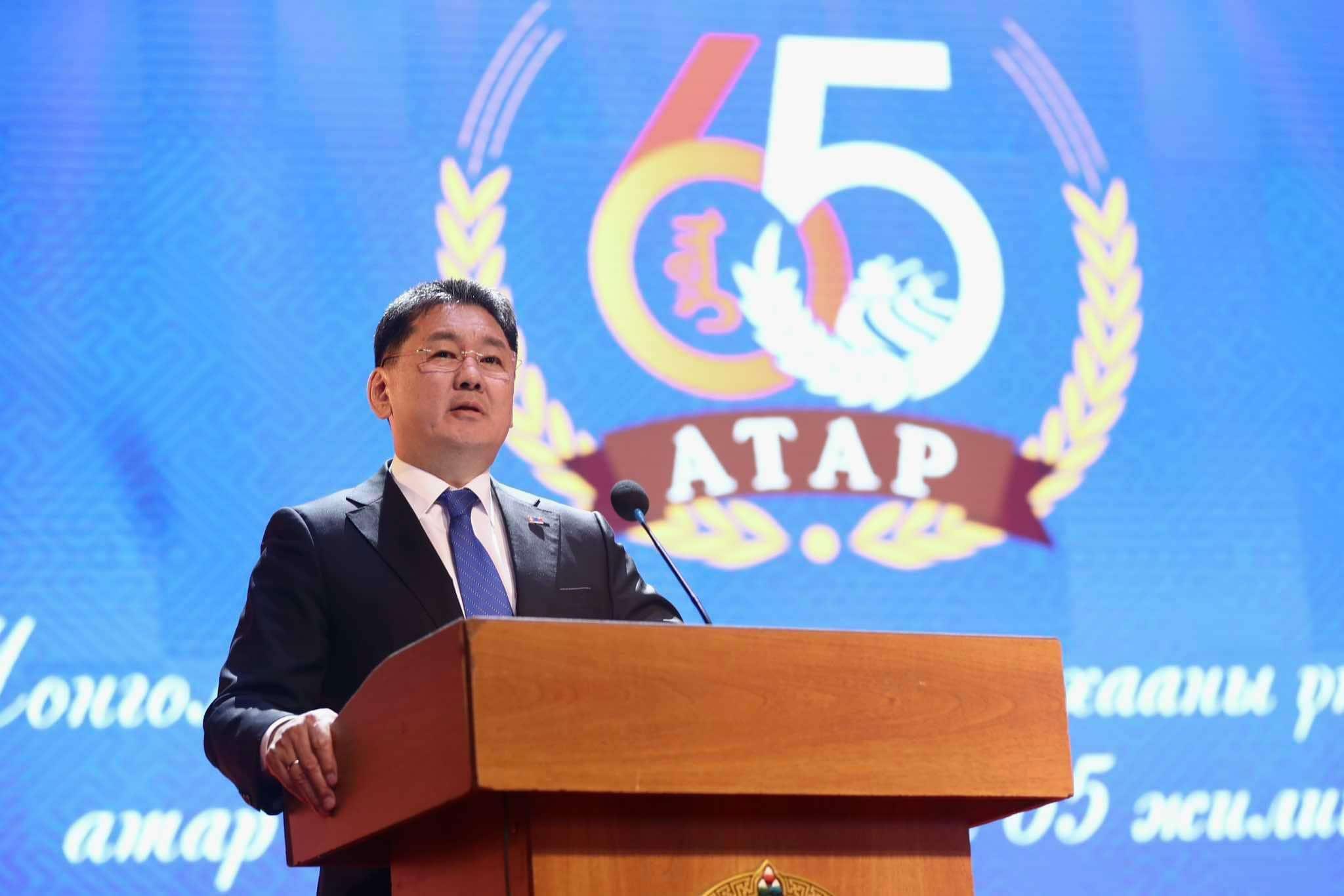 Монгол Улсын Ерөнхийлөгч Ухнаагийн Хүрэлсүх атар газар эзэмшсэний 65 жилийн ойн баярын хуралд оролцож, үг хэллээ.