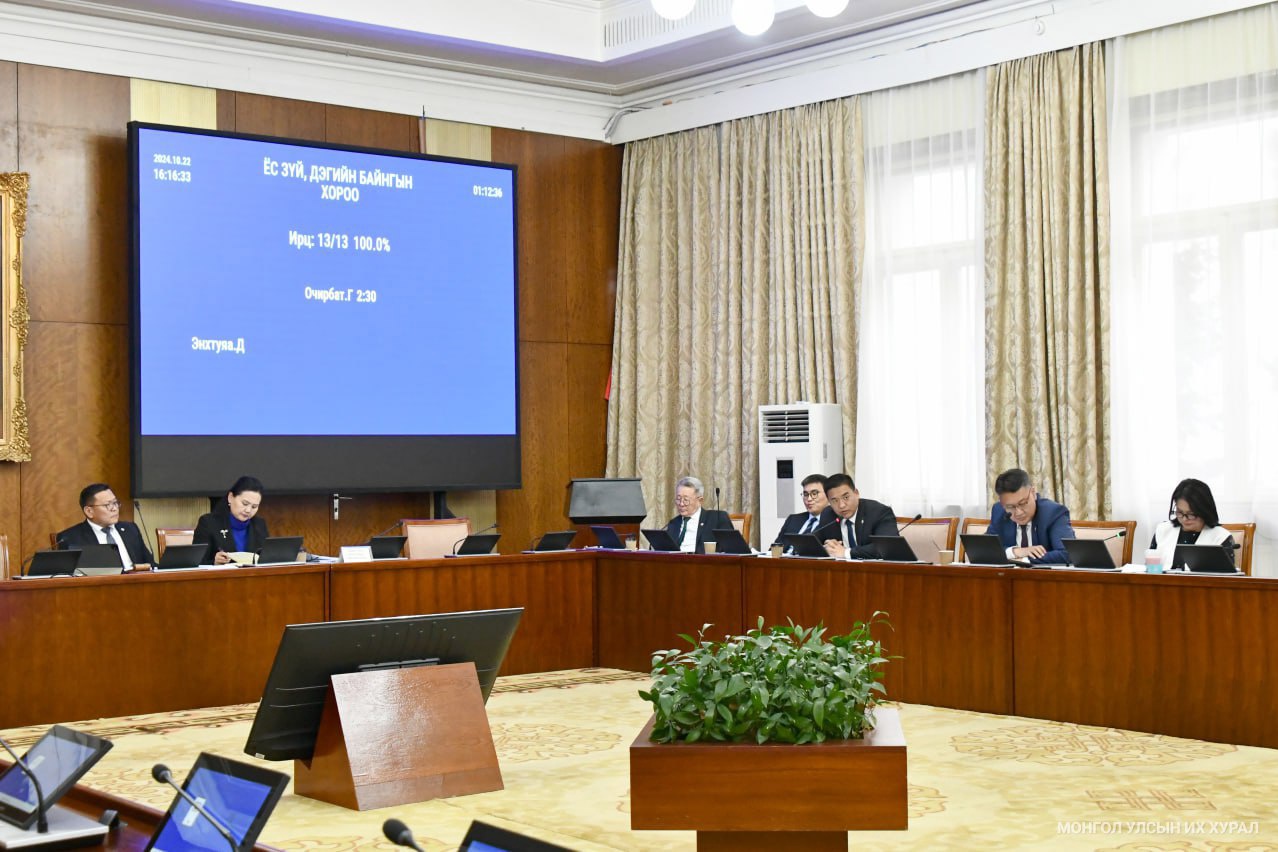 Ёс зүй, дэгийн байнгын хорооны өчигдрийн /2024.10.22/ хуралдаанаар Монгол Улсын 2025 оны төсвийн тухай, Үндэсний баялгийн сангийн 2025 оны төсвийн тухай, Нийгмийн даатгалын сангийн 2025 оны төсвийн тухай, Эрүүл мэндийн даатгалын сангийн 2025 оны төсвийн тухай хуулийн төслүүдийн хоёр дахь хэлэлцүүлгийг хийлээ.