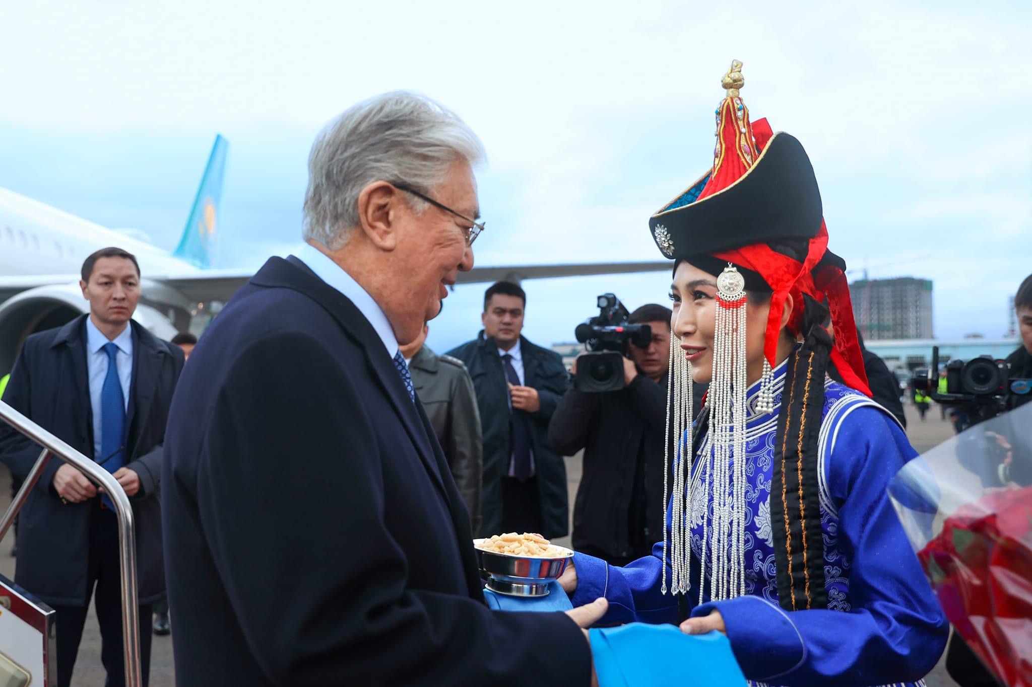 Ерөнхийлөгч К.Токаевыг “Буянт-Ухаа” нисэх онгоцны буудалд Гадаад харилцааны сайд Б.Батцэцэг, Бүгд Найрамдах Казахстан Улсаас Монгол Улсад суугаа Онц бөгөөд Бүрэн эрхт Элчин сайд Г.Б.Койшибаев болон албаны бусад хүн угтаж авлаа.