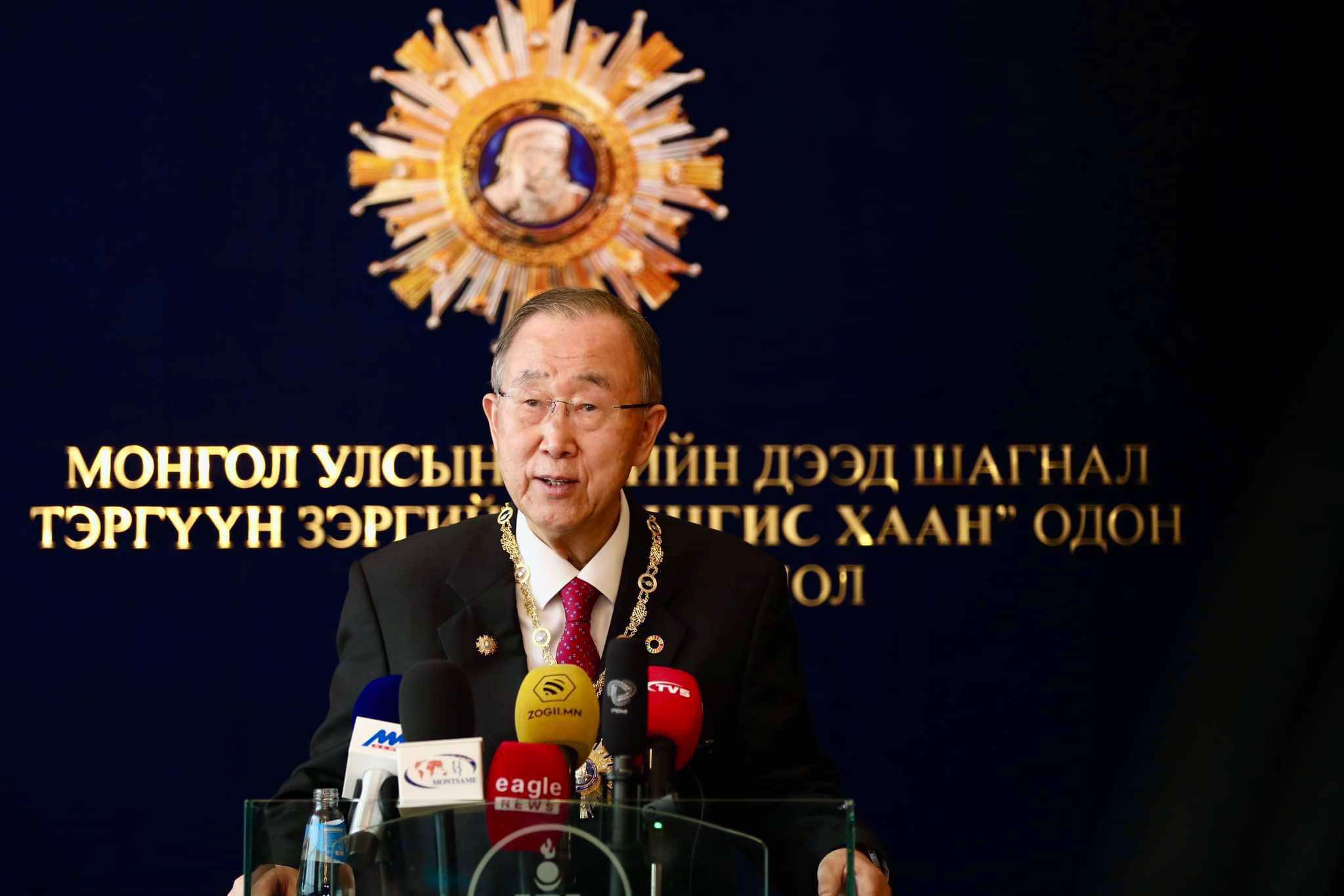 Монгол Улсын Ерөнхийлөгч Ухнаагийн Хүрэлсүх зарлиг гарган, Их эзэн Чингис хааны мэндэлсний 862 жилийн ой, “Монгол бахархлын өдөр”-ийг тохиолдуулан НҮБ-ын наймдахь Ерөнхий нарийн бичгийн дарга, “Илүү сайхан ирээдүйн төлөөх Бан Ги Мүн” сангийн тэргүүн Бан Ги Мүнд төрийн дээд шагнал, “Чингис хаан” тэргүүн зэргийн одон хүртээлээ.