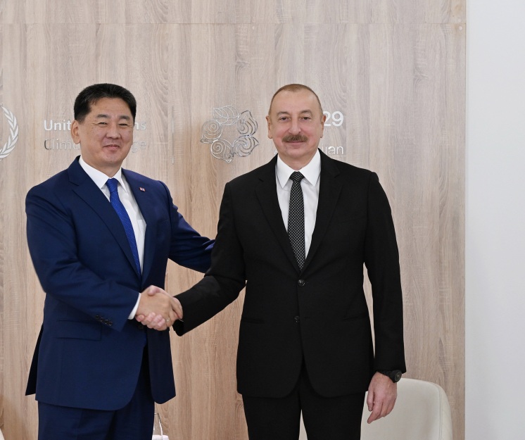 Уур амьсгалын өөрчлөлтийн асуудлаарх дэлхийн удирдагчдын дээд түвшний уулзалтад оролцохоор Азербайжан Улсын нийслэл Бакуд хүрэлцэн ирсэн Монгол Улсын Ерөнхийлөгч У.Хүрэлсүх тус улсын Ерөнхийлөгч Ильхам Алиевтай уулзлаа.
