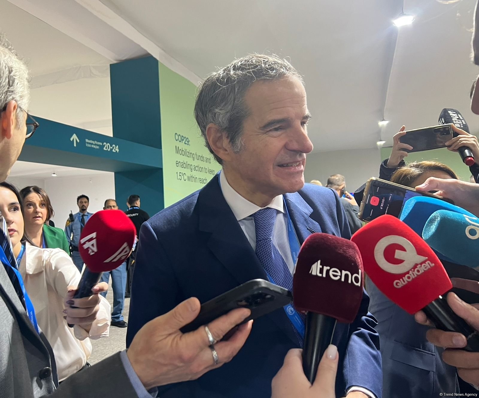 Тэрбээр цөмийн эрчим хүч энэхүү арга хэмжээнд онцгой үүрэг гүйцэтгэх ёстой гээд нүүрстөрөгчийн хийгүй ирээдүй рүү шилжих үе шаттай, тэнцвэртэй арга замыг эрэлхийлэх нь чухал гэж онцолжээ. Ингэхдээ нийгэм, эдийн засаг, хөдөлмөр болон бусад хүчин зүйлсийг тооцоолох учиртай. Манай агентлагийн зүгээс цөмийн эрчим хүчний үүрэг ихээхэн нэмэгдэх ёстой гэж үзэж байна. Тиймээс бид Бакуд ирээд байна” гэв.