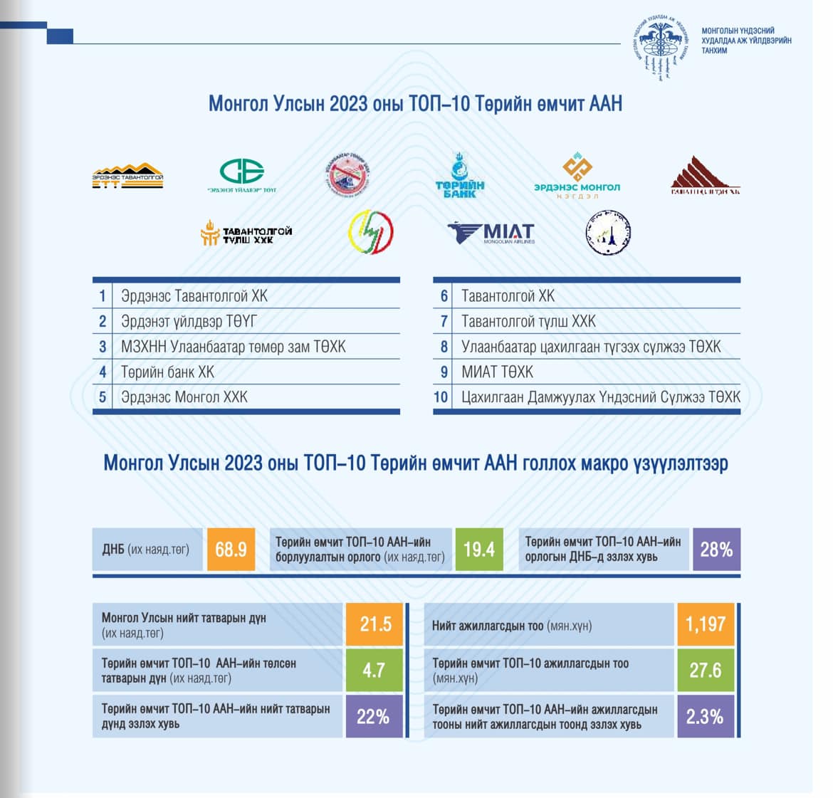 Монгол Улсын Засгийн газар, МҮХАҮТ хамтран Монгол Улсын 2023 оны ТОП аж ахуйн нэгжийг эрэмбэлж, өнөөдөр танилцууллаа.