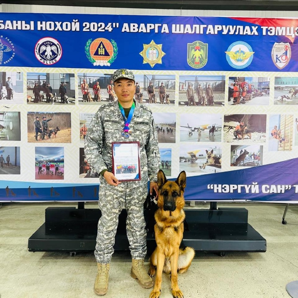 -Миний одоогийн хамтрагчийг Алдо гэдэг. Тэр гурван настай. Герман хоньч үүлдрийн, улаан халтар зүстэй, эр нохой. Эрэн хайх, аврах ажиллагааны дуудлага болон ангийн гаралтай түүхий эд олж илрүүлэх чадваруудыг маш сайн эзэмшсэн. Алдо маань номхон дөлгөөн зантай, эрхлэх дуртай. Заасан зүйлийг хурдан сурдаг. Нохойг хэдий чинээ хайрлана, тэр чинээгээр эзэндээ үнэнч зүтгэдэг. Хамтдаа үүрэг гүйцэтгээд хоёр жил орчим болж байна. Энэ онд нийслэлийн хэмжээнд тарваган тахал болон хүн малын гоц халдварт өвчнөөс урьдчилан сэргийлэх ажлыг эрчимжүүлэх хүрээнд Сонгинохайрхан дүүргийн 32 дугаар хорооны автомашин шалган нэвтрүүлэх 22-ын товчоонд долоо хоног үүрэг гүйцэтгэсэн. Ингэхдээ 28 тарвага, таван үнэг олж илрүүлэн, холбогдох байгууллагад хүлээлгэн өгсөн. Мөн төрийн цэргийн болон хууль сахиулах байгууллагуудын дунд зохион байгуулсан “Албаны нохой-2024” улсын аварга шалгаруулах тэмцээнд амжилттай оролцож, хүрэл медалийн эзэд болсон амжилттай ажиллаж байна.