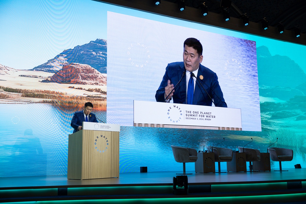 Монгол Улсын Ерөнхий сайд Л.Оюун-Эрдэнэ Саудын Арабын Хаант Улсын Эр-Рияд хотноо Цөлжилттэй тэмцэх тухай НҮБ-ын конвенцын талуудын 16 дугаар бага хурлын хүрээнд болсон “Усны Дээд түвшний уулзалт” (One Water Summit)-д оролцов. Тус уулзалт нь 2017 онд Францын Ерөнхийлөгч Э.Макроны дэвшүүлсэн “Нэг ертөнц” санаачилгын хэсэг бөгөөд энэ удаагийн уулзалтыг Франц Улс, Казахстан Улс, Саудын Арабын Хаант Улс, Дэлхийн банктай хамтран зохион байгууллаа.
