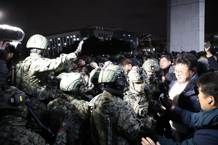 Арванхоёрдугаар сарын 3-4-нд цэргийн онц байдал тогтоосон үйл явдлыг мөрдөн шалгах тусгай бүлэг өнөө өглөө цагдаагийн гарын дарга нарыг төрийн тогтолцоог хүчээр өөрчлөх зорилгоор бослого гаргасан хэрэгт холбоотой гэж сэжиглэн баривчилсан байна. Хууль хамгаалах байгууллагуудын үзэж байгаагаар, Чо Жи Хо болон Ким Бон Сик нар депутатуудад цэргийн онцгой байдлыг цуцлахын төлөө санал өгөх боломж олгохгүй байхын тулд Үндэсний хурлын байрыг бүслэх тушаал заавар өгсөн ажээ. Тус улсын Үндсэн хуулийн дагуу ерөнхийлөгч цэргийн онц байдал зарлах эрхтэй байдаг, харин парламент түүнийг нь олонхын саналаар цуцлах эрхтэй юм.