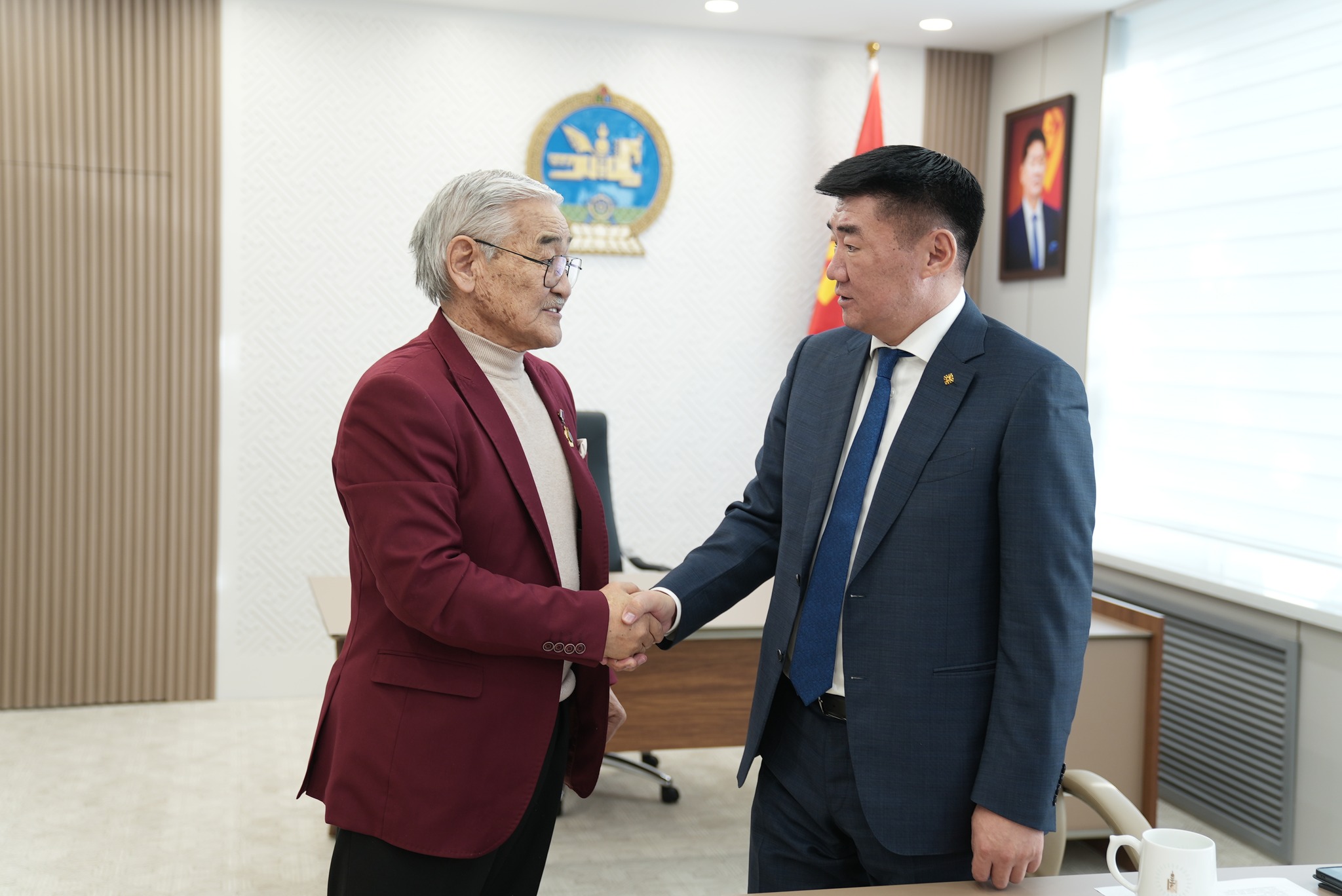 Батлан хамгаалахын сайд С.Бямбацогт "Үхэж үл болно” киноны Жамуха зэрэг олон түүхэн бүтээлийн дүрээр нь таних Монгол Улсын Хөдөлмөрийн баатар, Ардын жүжигчин П.Цэрэндагватай уулзаж, батлан хамгаалах салбарынхаа 2025 оны бодлого, зорилтын талаар яриа өрнүүлжээ.
