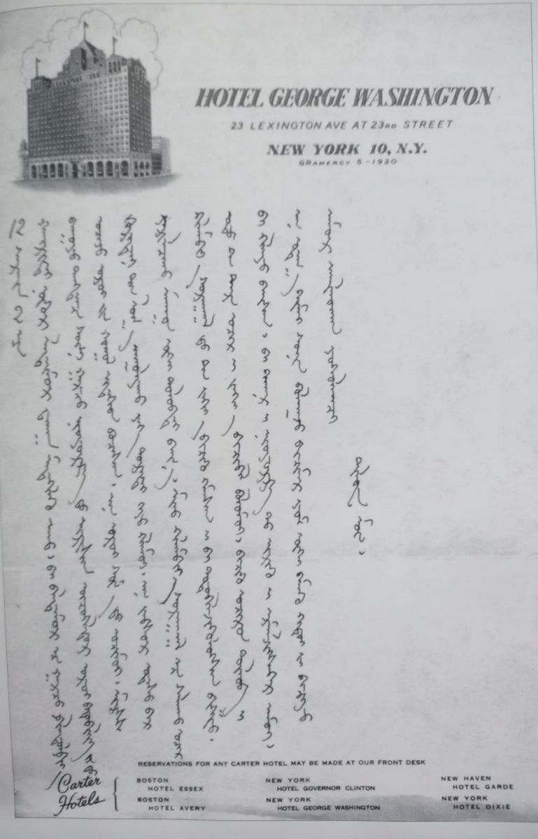 Нутгаас гараад удалгүй 1931-32 оны үед Бээжин хотноо өлзий ерөөлт учралаар Оуэн Латтимор хэмээх, хожмоо АНУ-ын өмнөө барих, тэргүүлэх монголч эрдэмтний нэг болсон эрхэм хүнтэй танилцан багш шавийн барилдлага тогтоосон нь үлдсэн насных нь турш түүний итгэлт нөхөр, ивээлт дүү, зүг чигийн луужин болсон бөлгөө. Америктэй Монголоо холбох хутагтын чин хүсэл тасарсангүй. Америкийн Элчин сайдад захидал илгээснээс яг 10 жилийн дараа. 1942 оны нэгдүгээр сард үнэнч нөхөр О.Латтимортоо хандан хуучны явдлыг дурсаж дахин нэг захидлыг Бээжин дэх Америкийн ЭСЯ-аар дамжуулан Ерөнхийлөгч Ф.Рузвельтэд хаяглаж Монголын ирээдүйд тус болохыг хүсэн илгээсэн билээ.