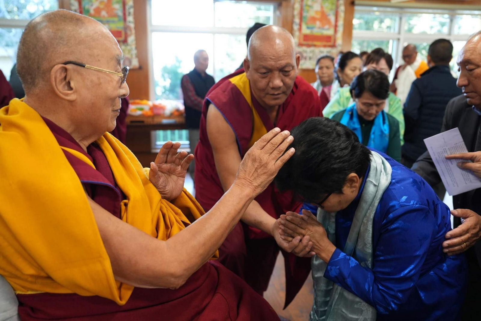 Энэ удаад Далай багшийн нас сүүдэр дээр гарсан, мөн өвдөгний мэс засал эмчилгээ хийлгээд удаагүй байгаа гэж дуулдсантай холбоотой байх гэмээр урьдчилан тусгай хуваарь гаргуулж байгаад гадаадын улс орноос ирсэн хийгээд төвөдийн мөргөлчдийг хамтад нь хүлээн авсан. Зочид мөргөлчдийг Дээрхийн гэгээнтэнд дөхөж очих үед хоёр лам хадгийг эргүүлэн мөргөлчний хүзүүн дээр тохож өгөөд, зөвхөн алга хавсран очуулж, Далай багш хүн бүрийн толгой дээр адис хүртээж, хааяа зарим хүний залбирсан гар дээр гараараа атгаж байгаа харагдсан. Ер нь Далай багшийн яг дэргэд нь очих үед сүрд нь автан сандарч, бараг л хаана гишгэж яваагаа мэдэхгүй, нүүр царайг нь харж ширтээд байж чадахгүй тийм бишрэл хүндлэлд автад явчихдаг тул би энэ удаад дараалалд урагшилж явах зуураа дээдсийн бараа төрхийг жаахан тогтоон ажиглахыг хичээж байлаа. Царай зүс нь тун чиг гэгээтэй, бага хүүхдийнх шиг булбарай гэмээр туяарч харагдах бөгөөд таних хүн таарч буй бололтой, зарим үед юм асууж, нэлээн хөнгөн шингэн үзэгдэнэ. Ингээд Далай багшид мөргөхөд дээдэстэн миний залбирсан гар дээр дарж атган адис хүртээхүй жаахан удлаа гэж санагдсан уу, бараа бологчид нь ташаанаас минь эвтэйхэн түрээд хажуу тийш гаргалаа.