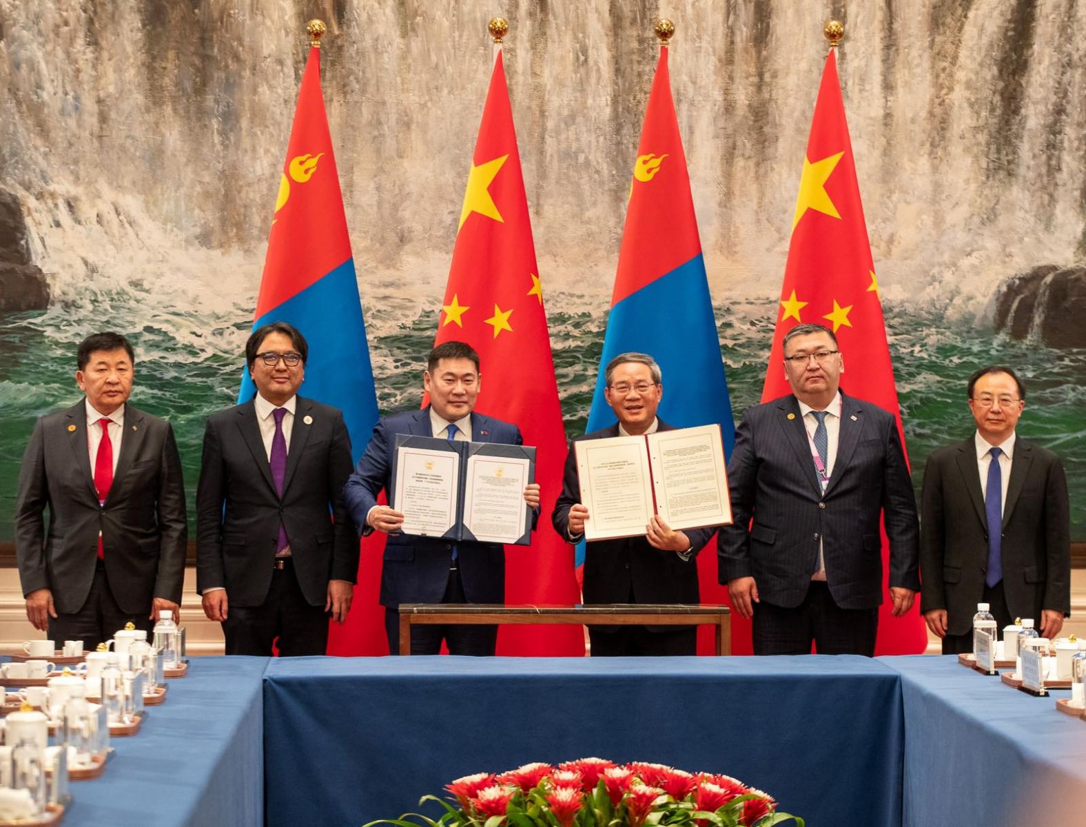 Хоёр улсын Засгийн газрын тэргүүн нар өнгөрсөн оны арван нэгдүгээр сард Шанхай хотноо уулзсанаас хойш Монгол, Хятадын харилцаа, хамтын ажиллагаа идэвхтэй өрнөж, тодорхой ололт амжилт гарч буйд сэтгэл хангалуун байгаагаа илэрхийллээ. Ялангуяа, Монгол Улсын Засгийн газраас хэрэгжүүлж буй 14 мега төслийн нэг болох Гашуунсухайт-Ганцмод боомтыг төмөр замаар холбох төсөл идэвхтэй урагшилж, энэ удаа “Гашуунсухайт-Ганцмод боомтын хил дамнасан төмөр зам, нүүрсний худалдаа, Тавантолгойн нүүрсний уурхайн хүчин чадлыг нэмэгдүүлэх хамтын ажиллагааны тухай Засгийн газар хоорондын хэлэлцээр”-т гарын үсэг зурсан нь хоёр талын хамтын ажиллагааг шинэ шатанд гаргахад чухал ач холбогдолтойг онцолсон юм.