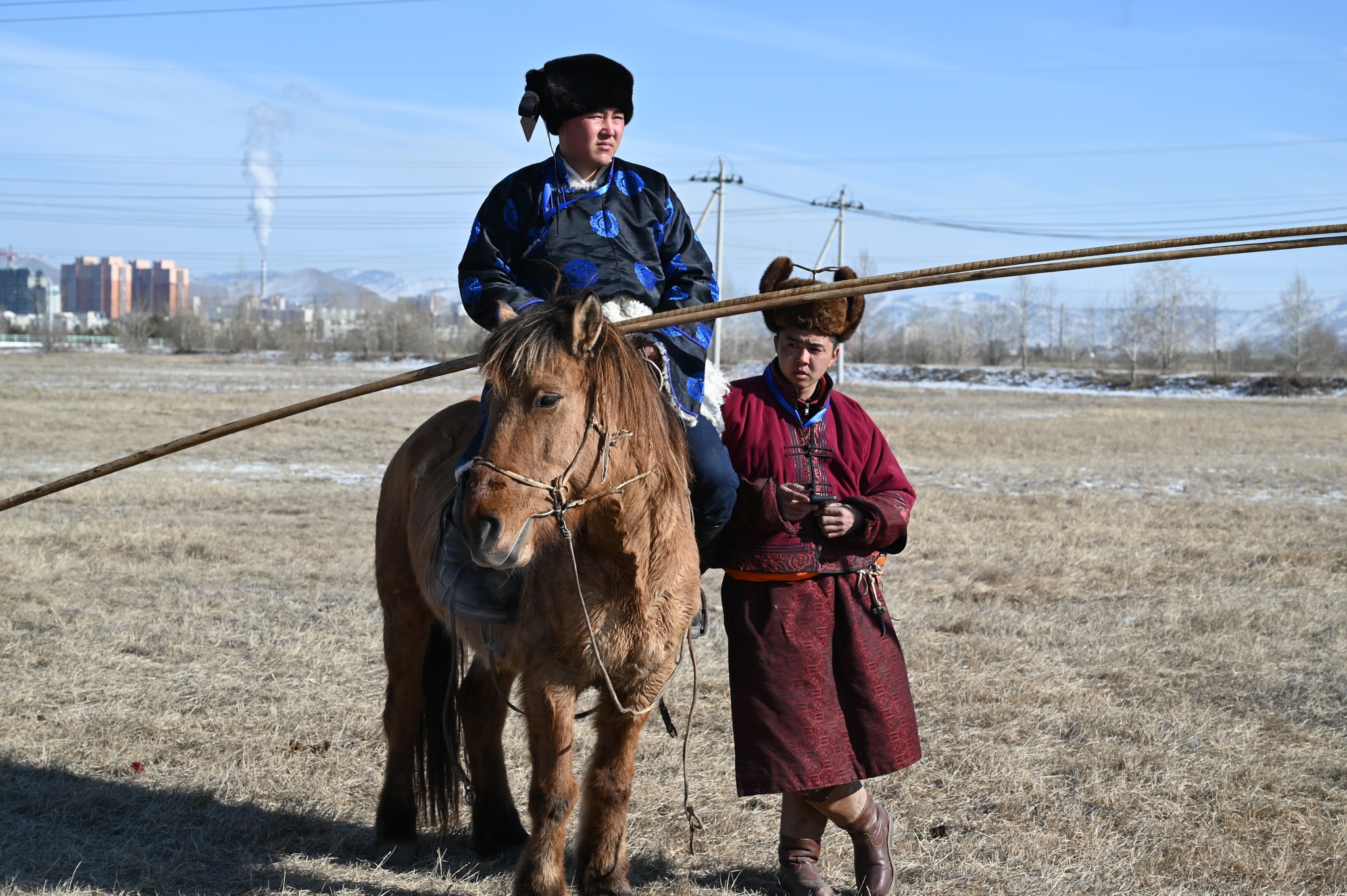 Дээлтэй бөхийн барилдаан гэнэ үү? хэний санаанд ийм юм ордог юм бол доо. Өвлийн хүйтэнд эмнэг сургадаг л юм байх даа. Зарим нэг нь ч улам л тэнэгрээд байх юм. Тэрийг үзэх гэж л жуулчид ирэв гэж.