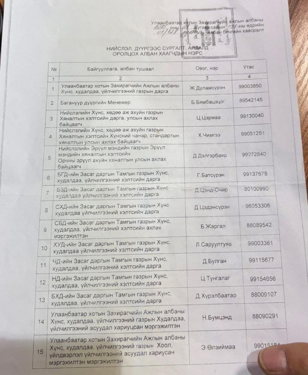 Үүний хариуг нийслэлээс дор нь барив. Нийслэлийн Засаг даргын Тамгын газрын Хэвлэл, мэдээллийн хэлтсээс "Нийслэлийн хүнс, худалдаа үйлчилгээний газрын дарга болон хоёр мэргэжилтэн БНСУ руу хувийн зардлаараа явж ая тухтай дэлгүүрийн стандарт, хөгжүүлэлтийн туршлагаас судлах сургалтад оролцсон" хэмээн мэдэгдлээ. Улаанбаатар хотын Ерөнхий менежер бөгөөд Захирагчийн ажлын албаны дарга Г.Батзоригийн 2025 оны хоёрдугаар сарын 11-ний өдрийн “Гадаад албан томилолтоор ажиллуулах тухай” Б/19 тоот тушаалд дурдсанаар Улаанбаатар хотын Захирагчийн Ажлын албаны Хүнс, худалдаа, үйлчилгээний газрын дарга Ж.Дуламсүрэн, Улаанбаатар хотын Захирагчийн Ажлын албаны Хүнс, худалдаа, үйлчилгээний газрын Худалдаа, үйлчилгээний асуудал хариуцсан мэргэжилтэн Н.Бумцэнд, Улаанбаатар хотын Захирагчийн Ажлын албаны Хүнс, худалдаа, үйлчилгээний асуудал хариуцсан мэргэжилтэн Э.Өлзиймаа нарыг хоёрдугаар сарын 11-нээс 17-ны өдрүүдэд БНСУ-д хувийн зардлаар, албан томилолтоор явуулж, тэгсэн атлаа цалинг хэвээр олгон чөлөө өгч ажиллуулсан болж таарав. Аялал биш, сургалт л гэнэ. Албан томилолт өгч, цалинг олгож, тэгсэн атлаа хувийн зардлаар нь сургалтад явуулсан гэдгийг ойлгоход ухаан хүрэхгүй нь.