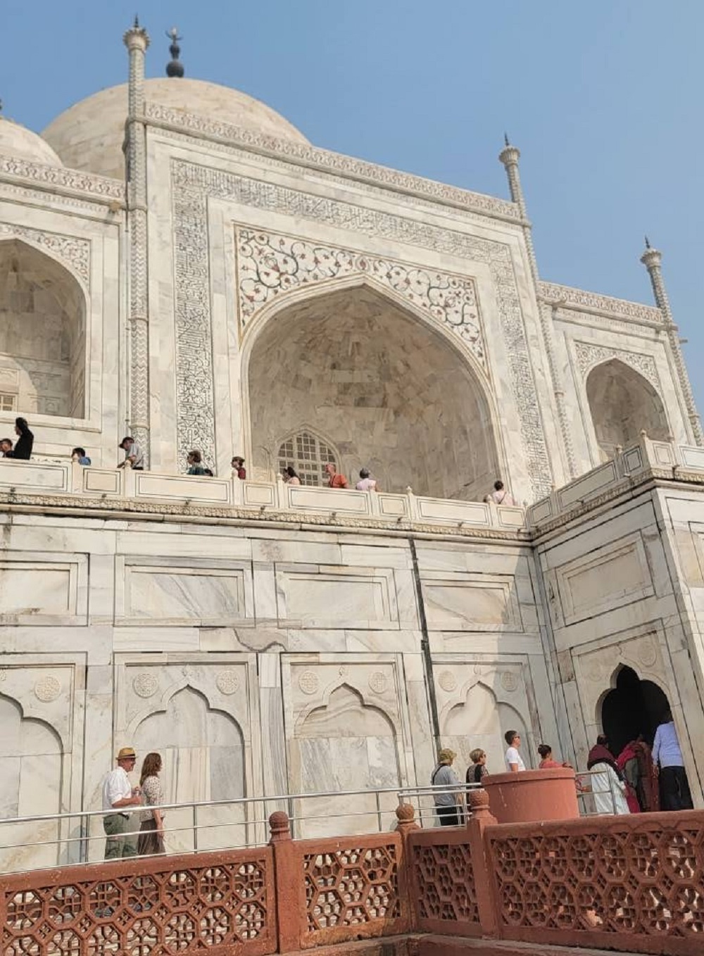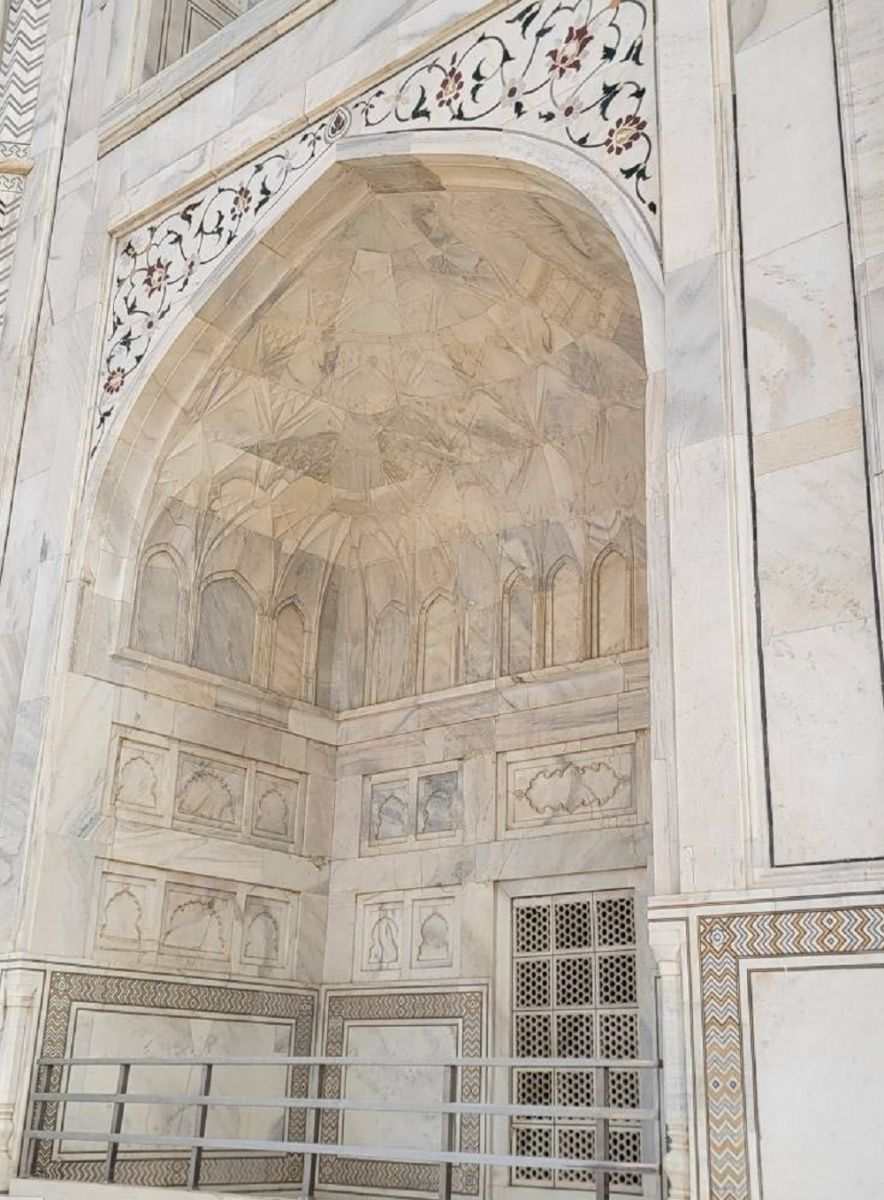 -Цасан цагаан гантиг нь зөвхөн бүрээс бөгөөд бунханыг улаан элсэн чулуугаар барьж байгуулсан.