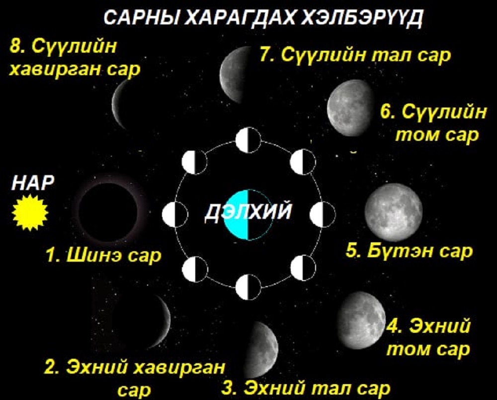 Гадаа гарч нар хараад өнөөдөр тэдний өдөр гэж хэлэх хэцүү шүү дээ. Өчигдрийн нар, өнөөдрийн нарыг ялгахад маш бэрх. Харин өчигдрийн сар, өнөөдрийн сар хоёр бол илтэд ялгаатай. Ургах, шингэх цаг нь ч өөр, арвидал, хомсдол нь ч өөр.