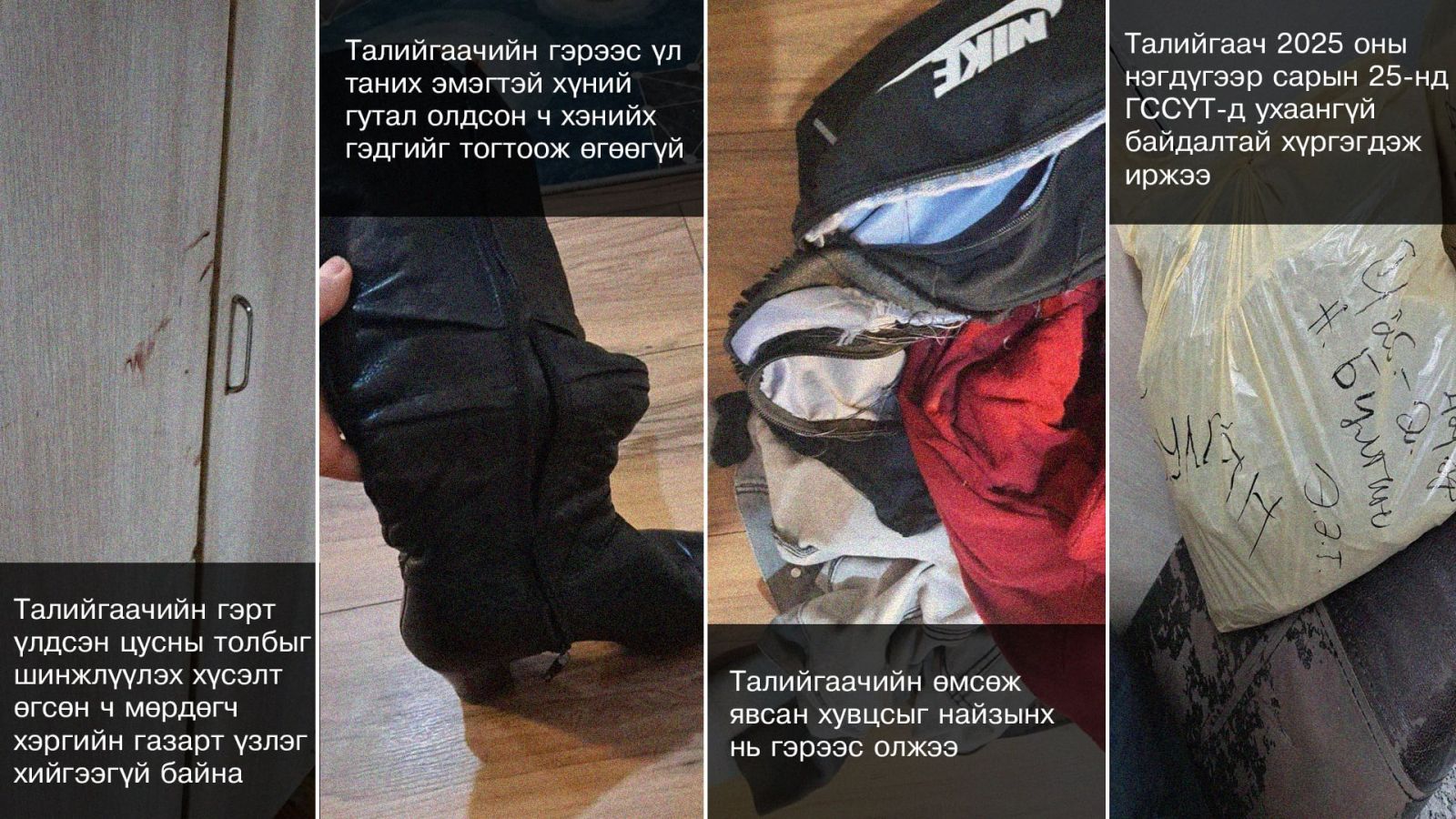 -Манай дэнжийн мянгийн гэрт шкафны нүүр, орны бүтээлэг тэр чигтээ цус болсон байсан. Би гэртээ очиж үзлэг хийлгэмээр байна, тэр цуснаас шинжилгээ дээж өгье гэхэд аваагүй. Одоо тэр чигтээ байж байгаа.