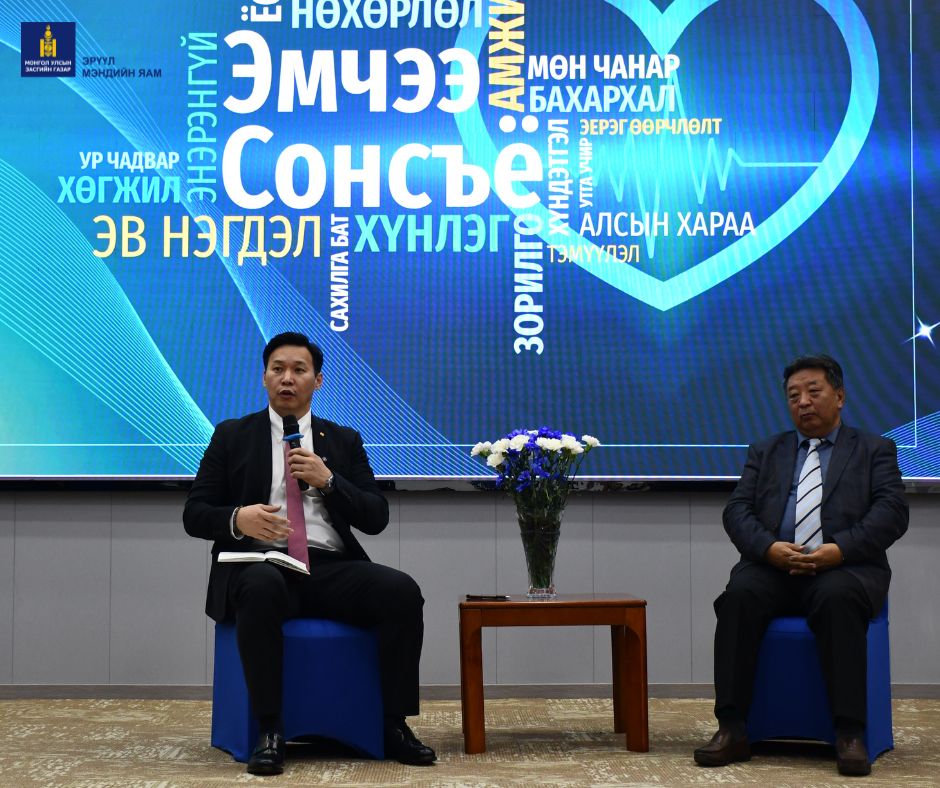 Өнөөдрийн “Эмчээ Сонсъё” арга хэмжээнд оролцож буй эмч нар салбарын сайдаас эрүүл мэндийн салбарт тулгамдаж буй асуудлынхаа хүрээнд хариулт авч хэрэгжүүлж буй бодлого үйл ажиллагааны талаар газар дээр нь хариулт авлаа. Энэхүү арга хэмжээг улсын хэмжээнд 6 өдрийн турш цахим болон танхимаар хийх юм.