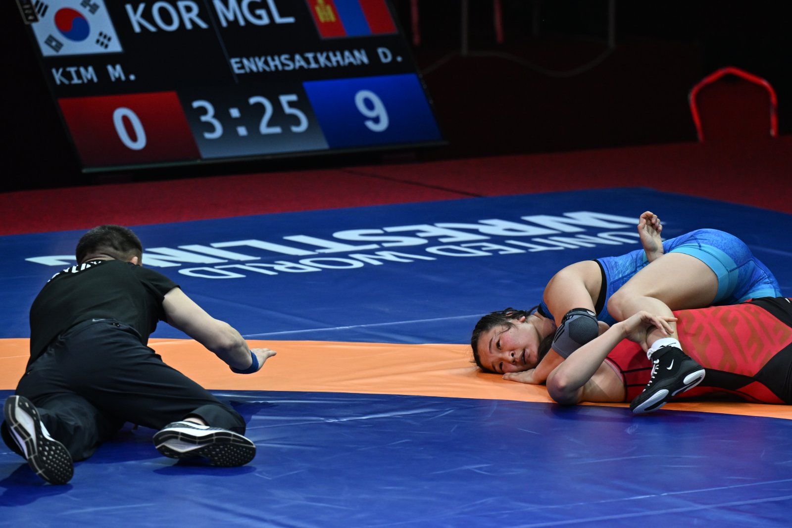ДАШТ-ий мөнгө, Азийн наадмын хүрэл медальт, ОУХМ Э.Дэлгэрмаа 68 кг-ын шөвгийн 8-д БНСУ-ын Ким Мин Жу-г цэвэр ялж, мөн хагас шигшээд үлдээд байна. Барилдаанд манай бөх 9:0-ээр тэргүүлж яваад цэвэр дарсан юм.