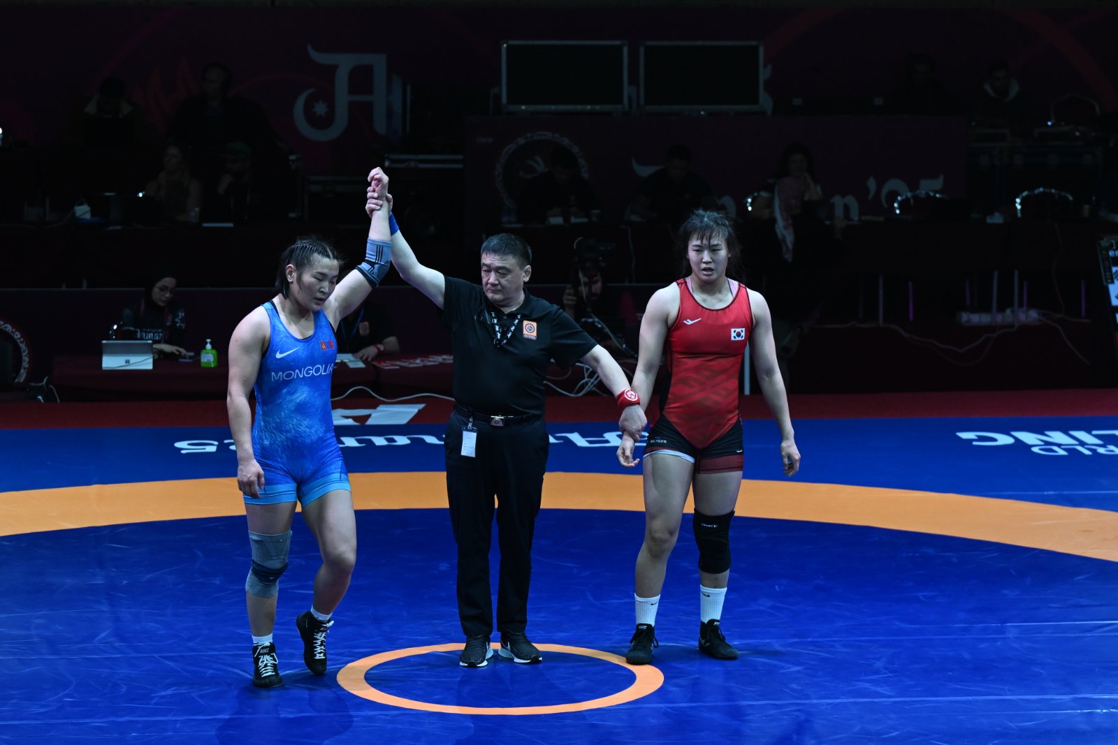 Чөлөөт бөхийн 2025 оны Азийн АШТ-ий гурав дахь өдөр Монголын таван бөх өрсөлдөж байна.